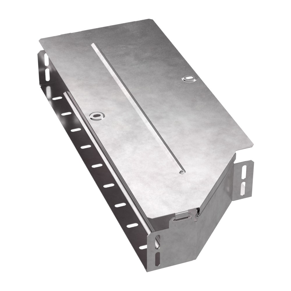 Аксессуары изготовленные из стали с защитным покрытием по методу Сендзимира – это изделия, на которых защитное цинковое покрытие было нанесено на листовую сталь перед изготовлением. Толщина защитного покрытия варьируется от 10 до 22мкм. Климатическое исполнение изделий УХЛ2, что предусматривают эксплуатацию в помещении и под навесом, при температуре эксплуатации от -80 до +150°С. Переходник левый предназначен для перехода с одной ширины лотка на другую. В комплект входит крышка.