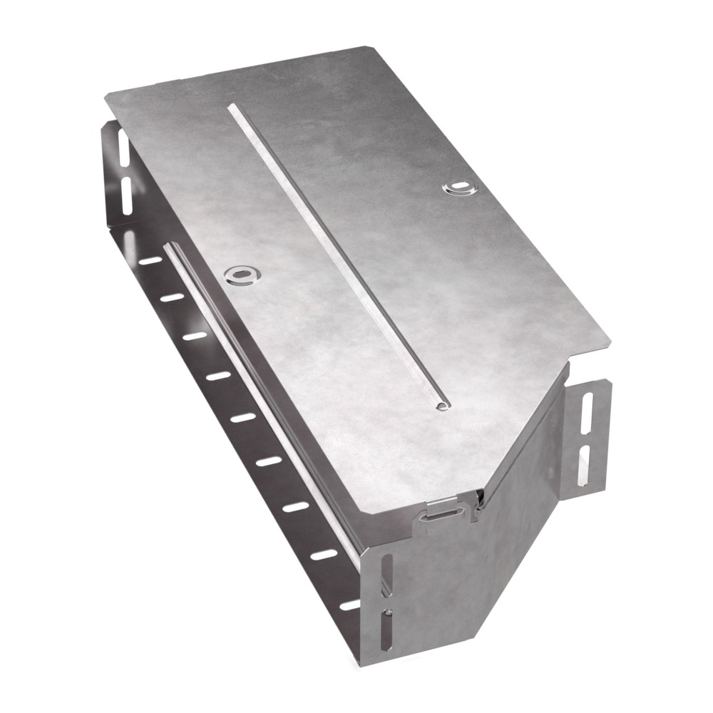 Аксессуары изготовленные из стали с защитным покрытием по методу Сендзимира – это изделия, на которых защитное цинковое покрытие было нанесено на листовую сталь перед изготовлением. Толщина защитного покрытия варьируется от 10 до 22мкм. Климатическое исполнение изделий УХЛ2, что предусматривают эксплуатацию в помещении и под навесом, при температуре эксплуатации от -80 до +150°С. Переходник левый предназначен для перехода с одной ширины лотка на другую. В комплект входит крышка.