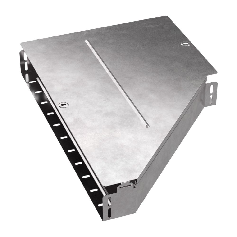Аксессуары изготовленные из стали с защитным покрытием по методу Сендзимира – это изделия, на которых защитное цинковое покрытие было нанесено на листовую сталь перед изготовлением. Толщина защитного покрытия варьируется от 10 до 22мкм. Климатическое исполнение изделий УХЛ2, что предусматривают эксплуатацию в помещении и под навесом, при температуре эксплуатации от -80 до +150°С. Переходник левый предназначен для перехода с одной ширины лотка на другую. В комплект входит крышка.