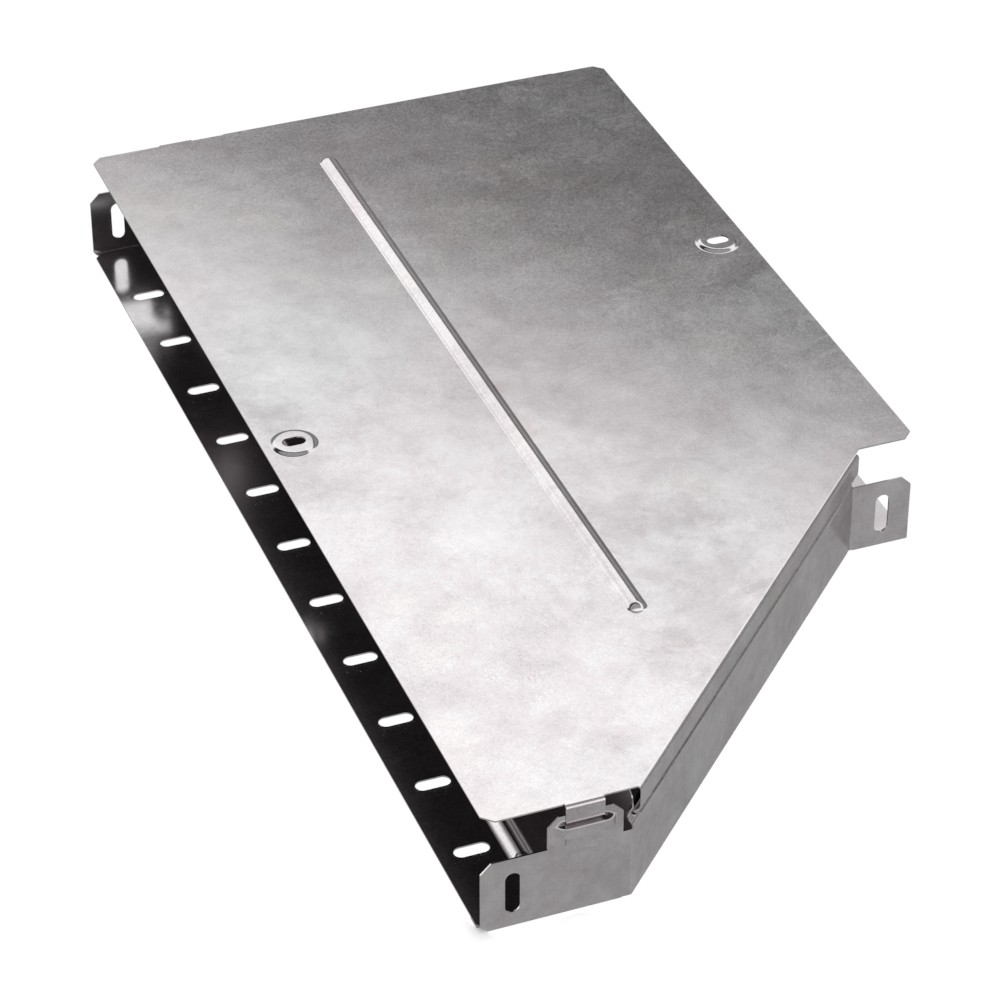 Аксессуары изготовленные из стали с защитным покрытием по методу Сендзимира – это изделия, на которых защитное цинковое покрытие было нанесено на листовую сталь перед изготовлением. Толщина защитного покрытия варьируется от 10 до 22мкм. Климатическое исполнение изделий УХЛ2, что предусматривают эксплуатацию в помещении и под навесом, при температуре эксплуатации от -80 до +150°С. Переходник левый предназначен для перехода с одной ширины лотка на другую. В комплект входит крышка.