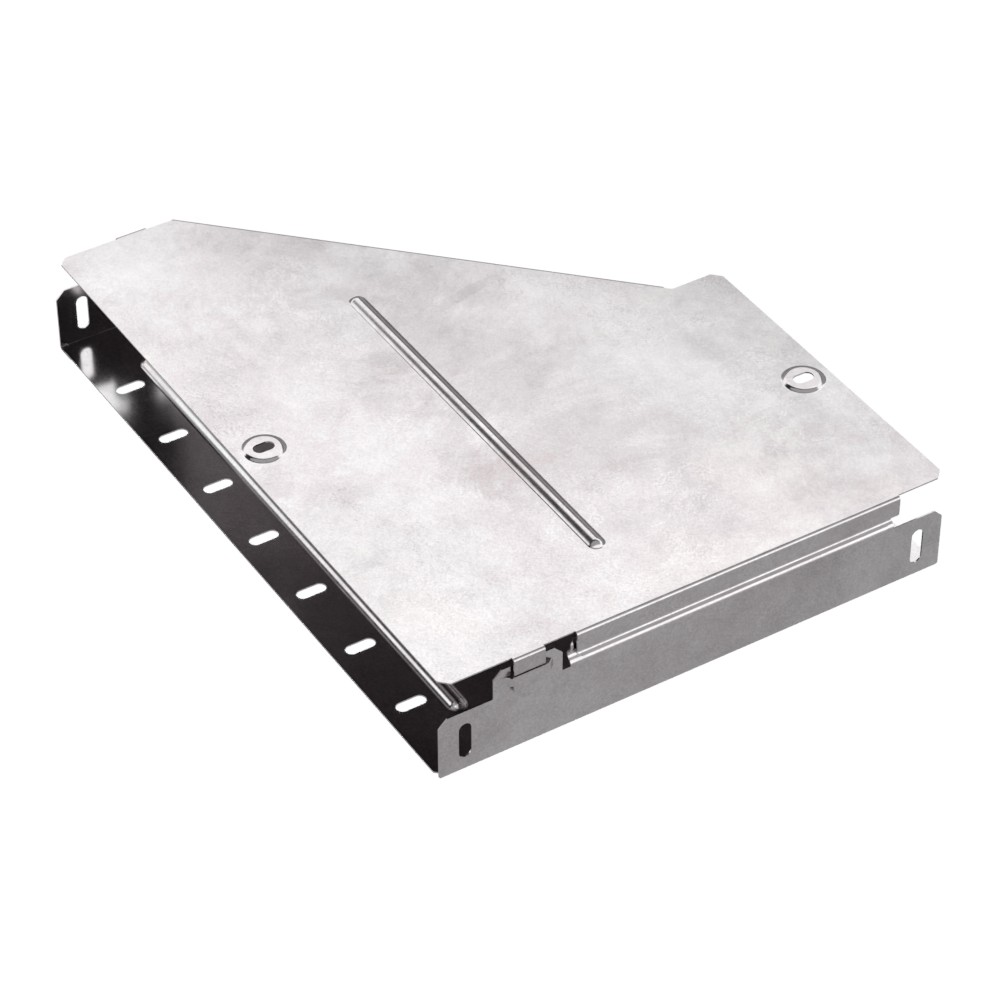 Аксессуары изготовленные из стали с защитным покрытием по методу Сендзимира – это изделия, на которых защитное цинковое покрытие было нанесено на листовую сталь перед изготовлением. Толщина защитного покрытия варьируется от 10 до 22мкм. Климатическое исполнение изделий УХЛ2, что предусматривают эксплуатацию в помещении и под навесом, при температуре эксплуатации от -80 до +150°С. Переходник правый предназначен для перехода с одной ширины лотка на другую. В комплект входит крышка.