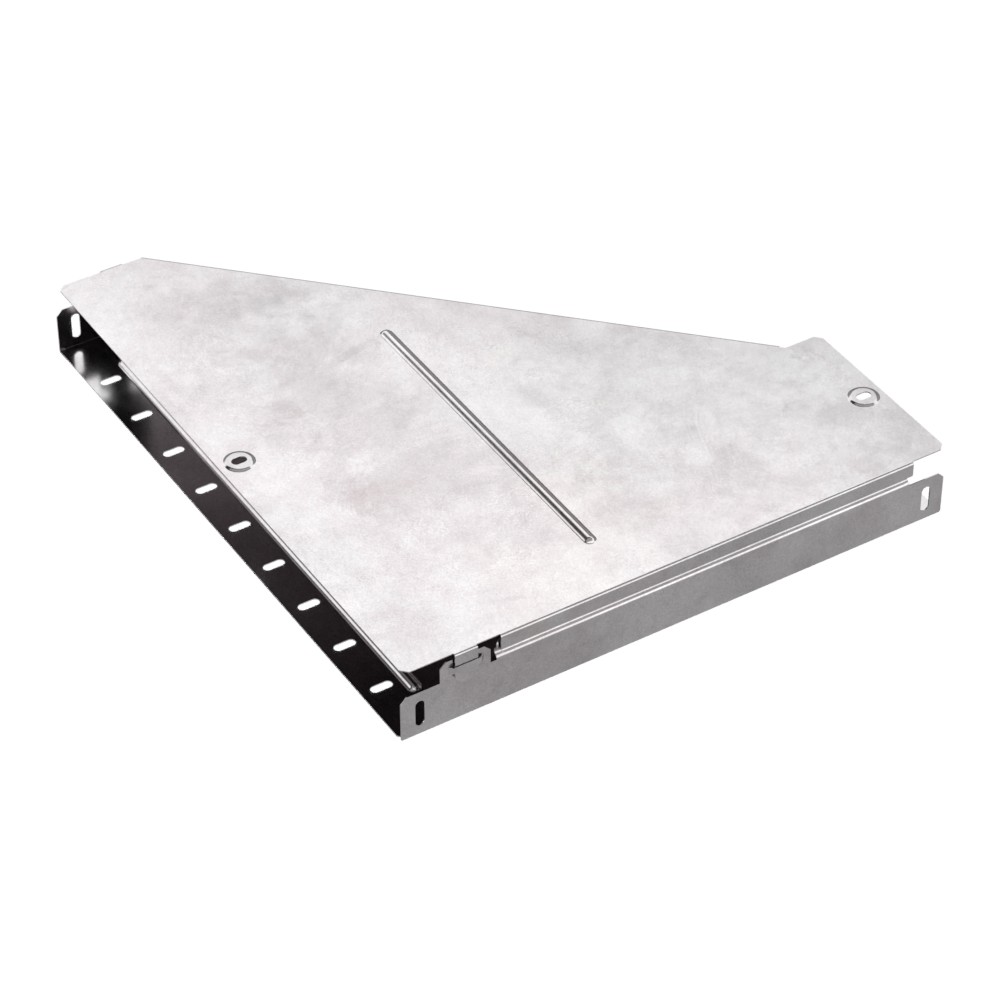 Аксессуары изготовленные из стали с защитным покрытием по методу Сендзимира – это изделия, на которых защитное цинковое покрытие было нанесено на листовую сталь перед изготовлением. Толщина защитного покрытия варьируется от 10 до 22мкм. Климатическое исполнение изделий УХЛ2, что предусматривают эксплуатацию в помещении и под навесом, при температуре эксплуатации от -80 до +150°С. Переходник правый предназначен для перехода с одной ширины лотка на другую. В комплект входит крышка.