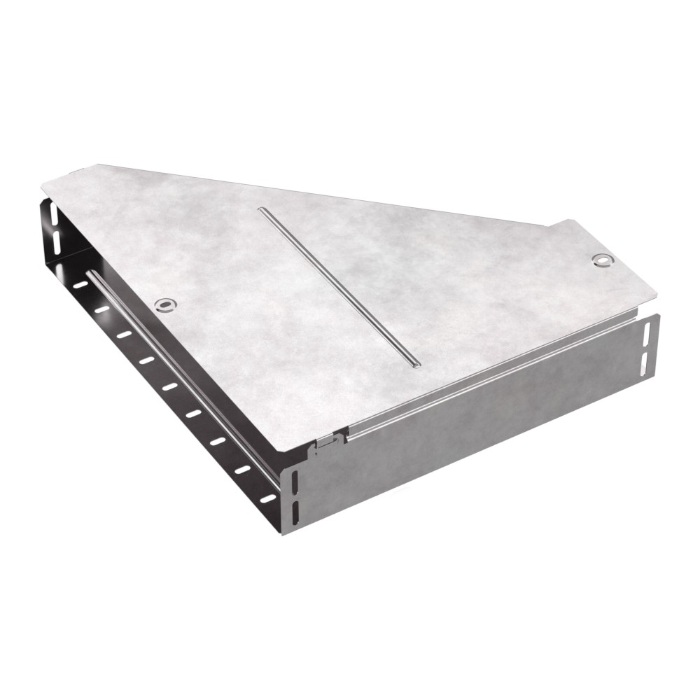 Аксессуары изготовленные из стали с защитным покрытием по методу Сендзимира – это изделия, на которых защитное цинковое покрытие было нанесено на листовую сталь перед изготовлением. Толщина защитного покрытия варьируется от 10 до 22мкм. Климатическое исполнение изделий УХЛ2, что предусматривают эксплуатацию в помещении и под навесом, при температуре эксплуатации от -80 до +150°С. Переходник правый предназначен для перехода с одной ширины лотка на другую. В комплект входит крышка.