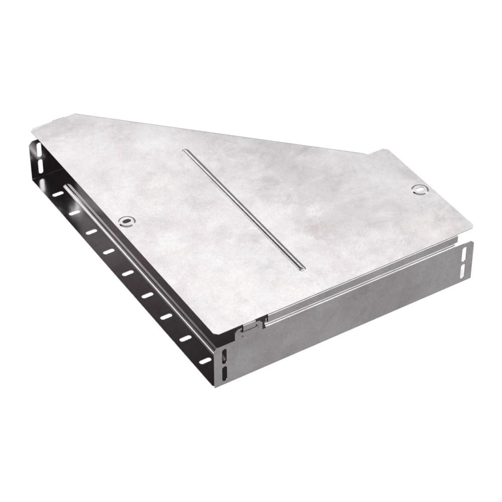 Аксессуары изготовленные из стали с защитным покрытием по методу Сендзимира – это изделия, на которых защитное цинковое покрытие было нанесено на листовую сталь перед изготовлением. Толщина защитного покрытия варьируется от 10 до 22мкм. Климатическое исполнение изделий УХЛ2, что предусматривают эксплуатацию в помещении и под навесом, при температуре эксплуатации от -80 до +150°С. Переходник правый предназначен для перехода с одной ширины лотка на другую. В комплект входит крышка.