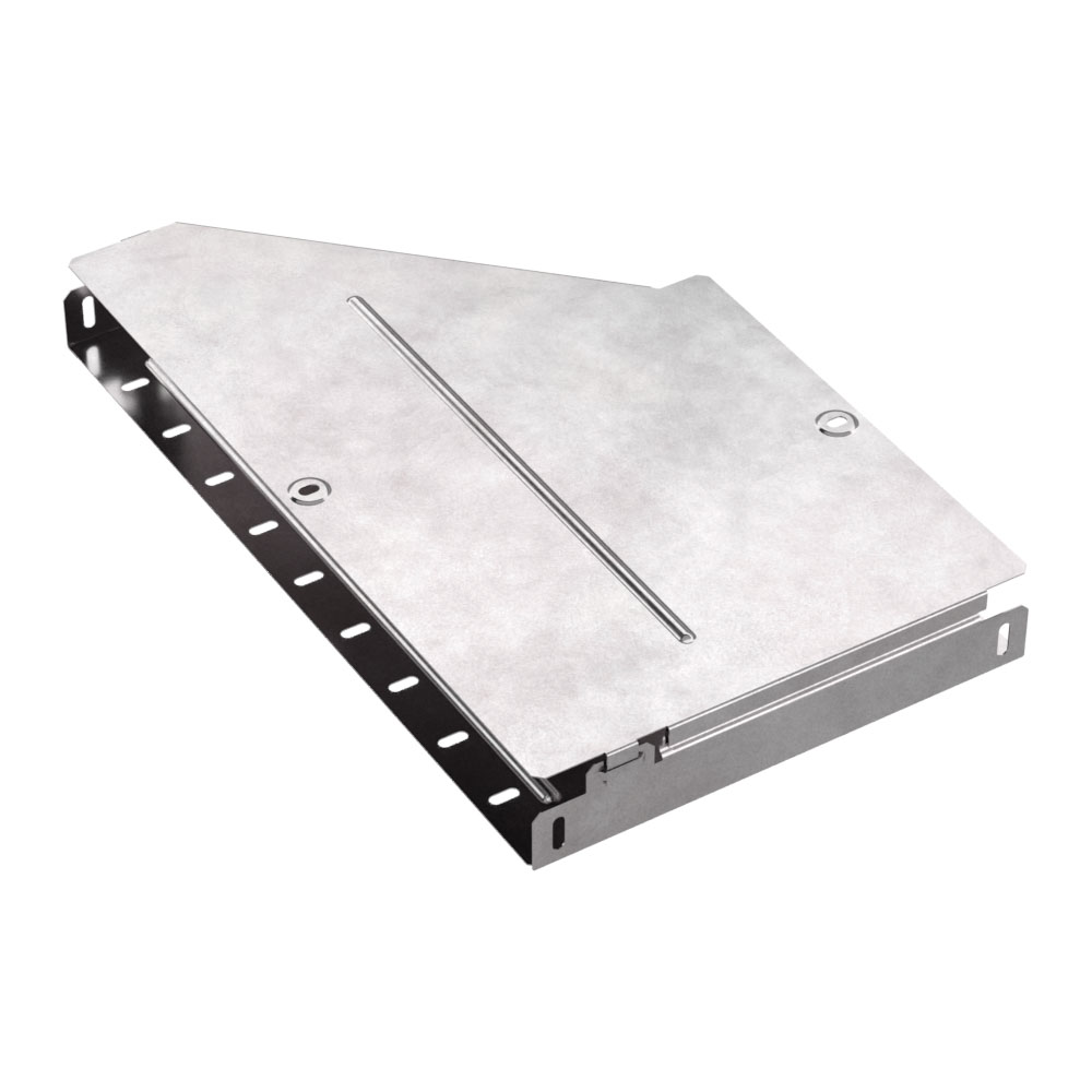 Аксессуары изготовленные из стали с защитным покрытием по методу Сендзимира – это изделия, на которых защитное цинковое покрытие было нанесено на листовую сталь перед изготовлением. Толщина защитного покрытия варьируется от 10 до 22мкм. Климатическое исполнение изделий УХЛ2, что предусматривают эксплуатацию в помещении и под навесом, при температуре эксплуатации от -80 до +150°С. Переходник правый предназначен для перехода с одной ширины лотка на другую. В комплект входит крышка.