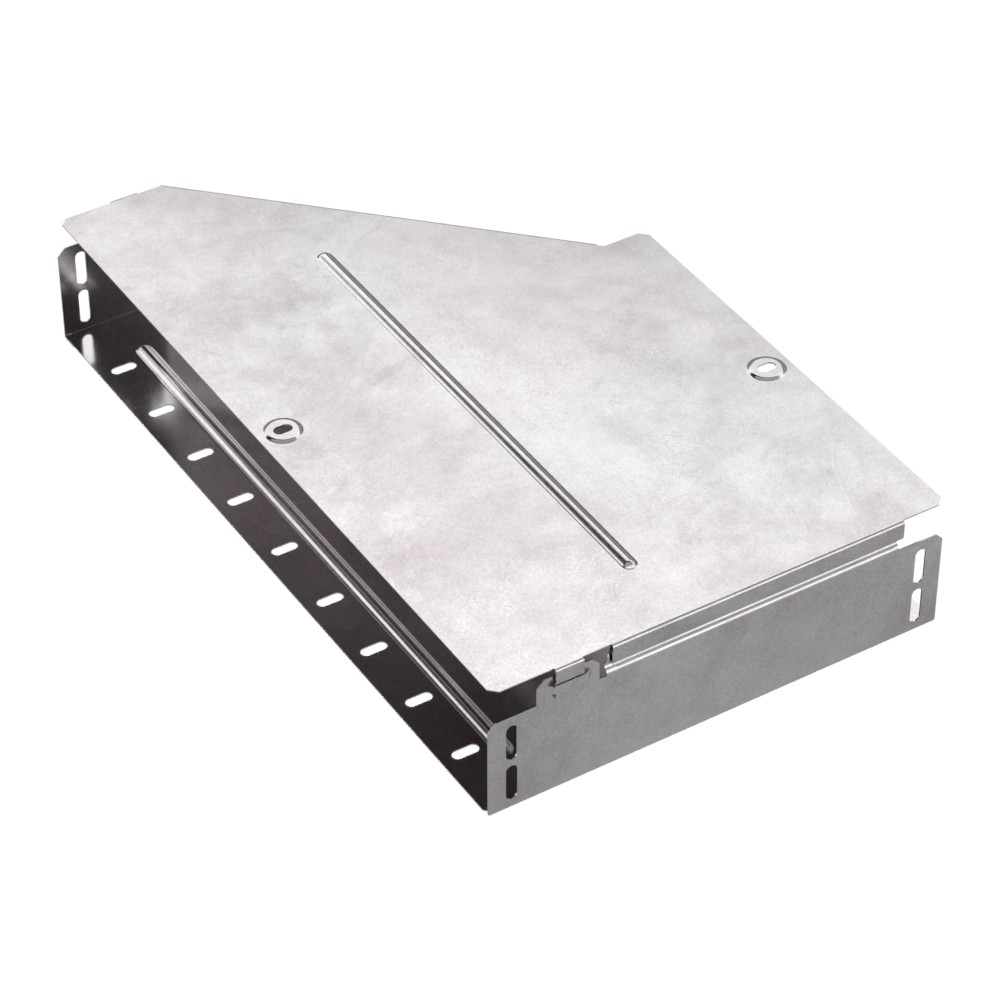 Аксессуары изготовленные из стали с защитным покрытием по методу Сендзимира – это изделия, на которых защитное цинковое покрытие было нанесено на листовую сталь перед изготовлением. Толщина защитного покрытия варьируется от 10 до 22мкм. Климатическое исполнение изделий УХЛ2, что предусматривают эксплуатацию в помещении и под навесом, при температуре эксплуатации от -80 до +150°С. Переходник правый предназначен для перехода с одной ширины лотка на другую. В комплект входит крышка.