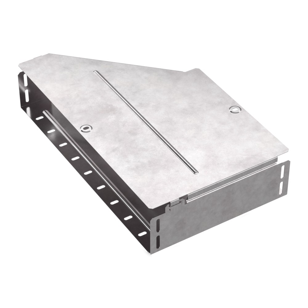 Аксессуары изготовленные из стали с защитным покрытием по методу Сендзимира – это изделия, на которых защитное цинковое покрытие было нанесено на листовую сталь перед изготовлением. Толщина защитного покрытия варьируется от 10 до 22мкм. Климатическое исполнение изделий УХЛ2, что предусматривают эксплуатацию в помещении и под навесом, при температуре эксплуатации от -80 до +150°С. Переходник правый предназначен для перехода с одной ширины лотка на другую. В комплект входит крышка.