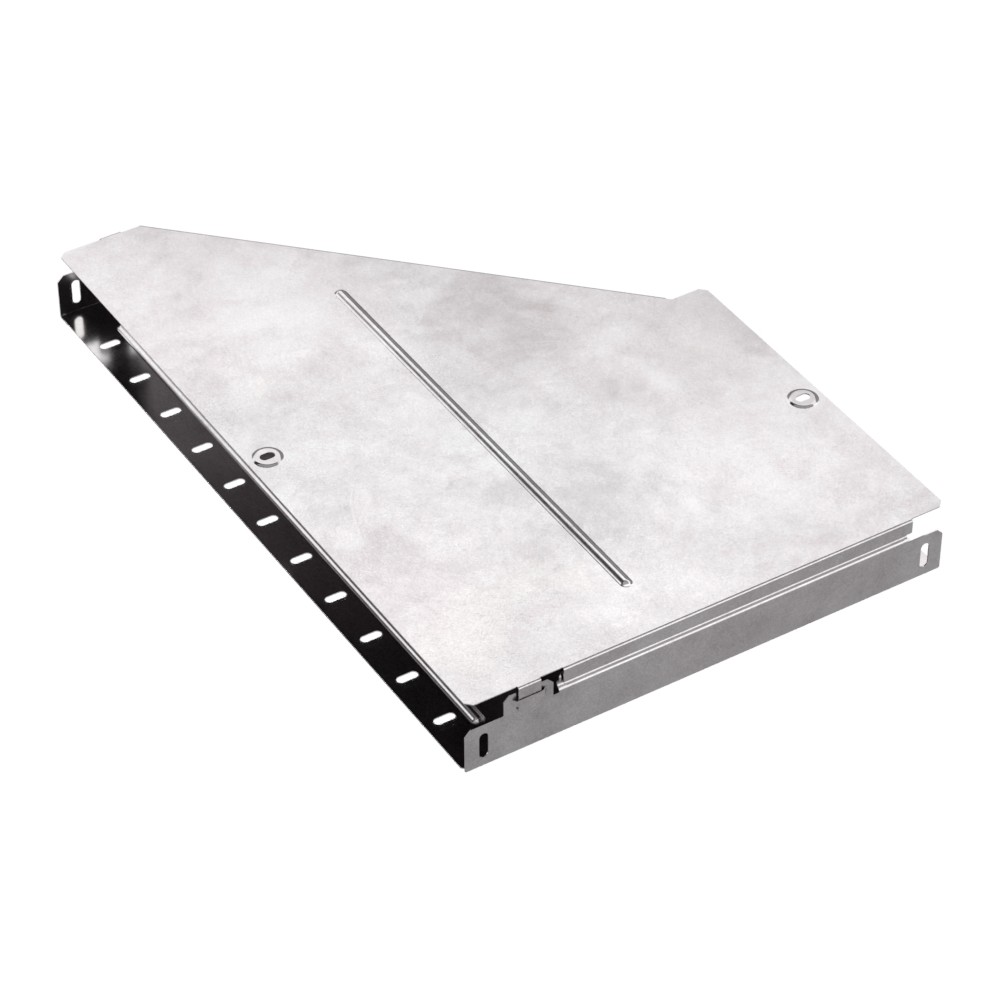 Аксессуары изготовленные из стали с защитным покрытием по методу Сендзимира – это изделия, на которых защитное цинковое покрытие было нанесено на листовую сталь перед изготовлением. Толщина защитного покрытия варьируется от 10 до 22мкм. Климатическое исполнение изделий УХЛ2, что предусматривают эксплуатацию в помещении и под навесом, при температуре эксплуатации от -80 до +150°С. Переходник правый предназначен для перехода с одной ширины лотка на другую. В комплект входит крышка.