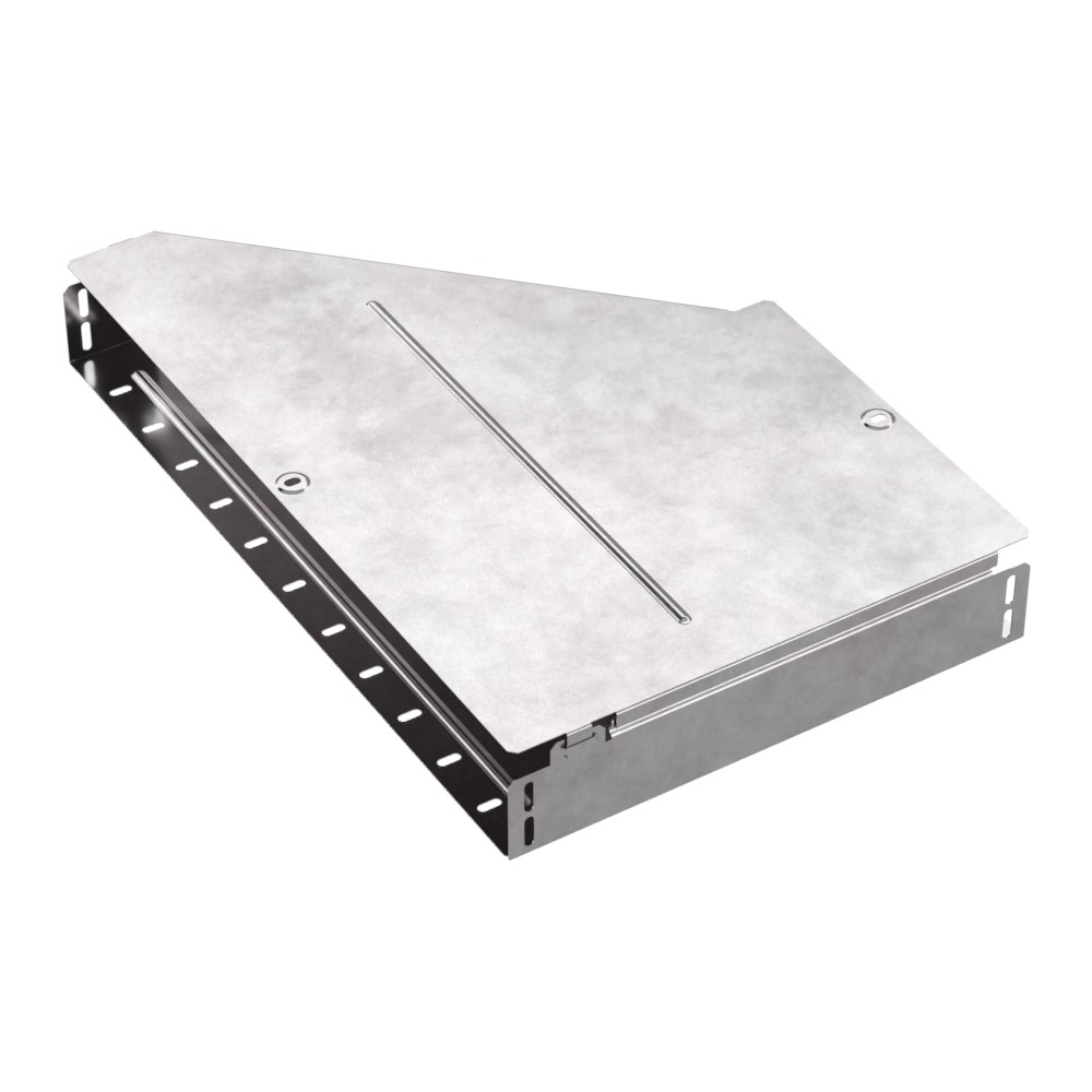 Аксессуары изготовленные из стали с защитным покрытием по методу Сендзимира – это изделия, на которых защитное цинковое покрытие было нанесено на листовую сталь перед изготовлением. Толщина защитного покрытия варьируется от 10 до 22мкм. Климатическое исполнение изделий УХЛ2, что предусматривают эксплуатацию в помещении и под навесом, при температуре эксплуатации от -80 до +150°С. Переходник правый предназначен для перехода с одной ширины лотка на другую. В комплект входит крышка.