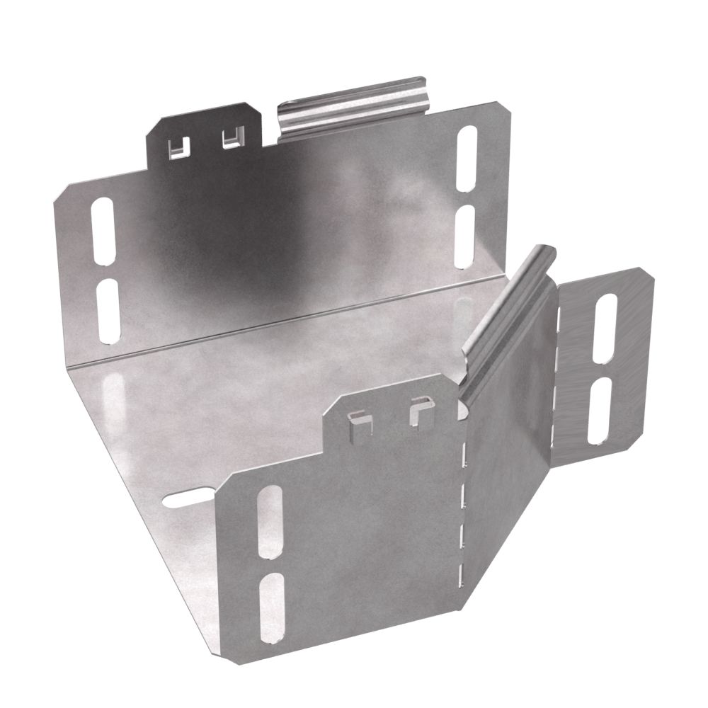 Аксессуары изготовленные из стали с защитным покрытием по методу Сендзимира – это изделия, на которых защитное цинковое покрытие было нанесено на листовую сталь перед изготовлением. Толщина защитного покрытия варьируется от 10 до 22мкм. Климатическое исполнение изделий УХЛ2, что предусматривают эксплуатацию в помещении и под навесом, при температуре эксплуатации от -80 до +150°С. Переходник предназначен для перехода с одной ширины лотка на другую, при неизменной высоте лотка. Крышка в комплект не входит.