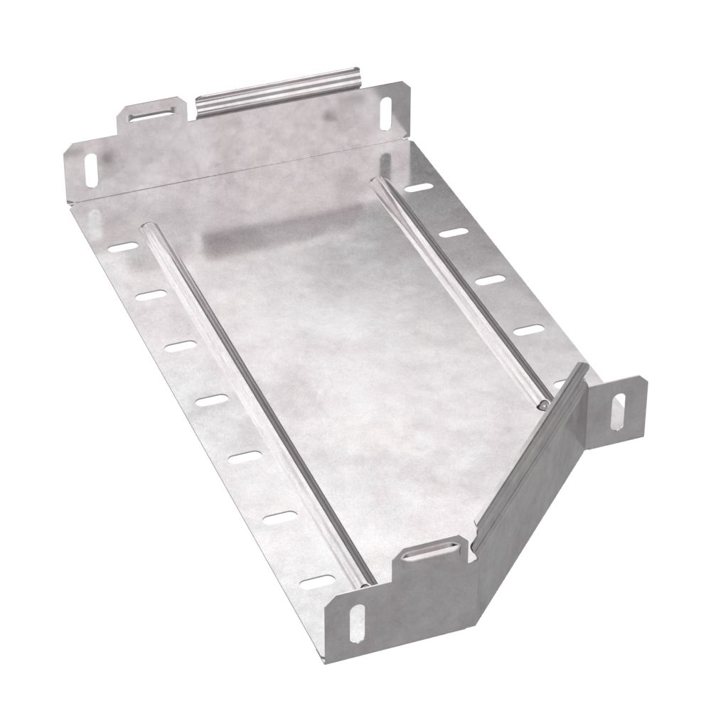 Аксессуары изготовленные из стали с защитным покрытием по методу Сендзимира – это изделия, на которых защитное цинковое покрытие было нанесено на листовую сталь перед изготовлением. Толщина защитного покрытия варьируется от 10 до 22мкм. Климатическое исполнение изделий УХЛ2, что предусматривают эксплуатацию в помещении и под навесом, при температуре эксплуатации от -80 до +150°С. Переходник предназначен для перехода с одной ширины лотка на другую, при неизменной высоте лотка. Крышка в комплект не входит.
