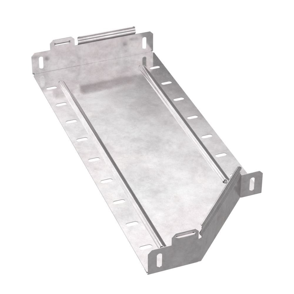 Аксессуары изготовленные из стали с защитным покрытием по методу Сендзимира – это изделия, на которых защитное цинковое покрытие было нанесено на листовую сталь перед изготовлением. Толщина защитного покрытия варьируется от 10 до 22мкм. Климатическое исполнение изделий УХЛ2, что предусматривают эксплуатацию в помещении и под навесом, при температуре эксплуатации от -80 до +150°С. Переходник предназначен для перехода с одной ширины лотка на другую, при неизменной высоте лотка. Крышка в комплект не входит.