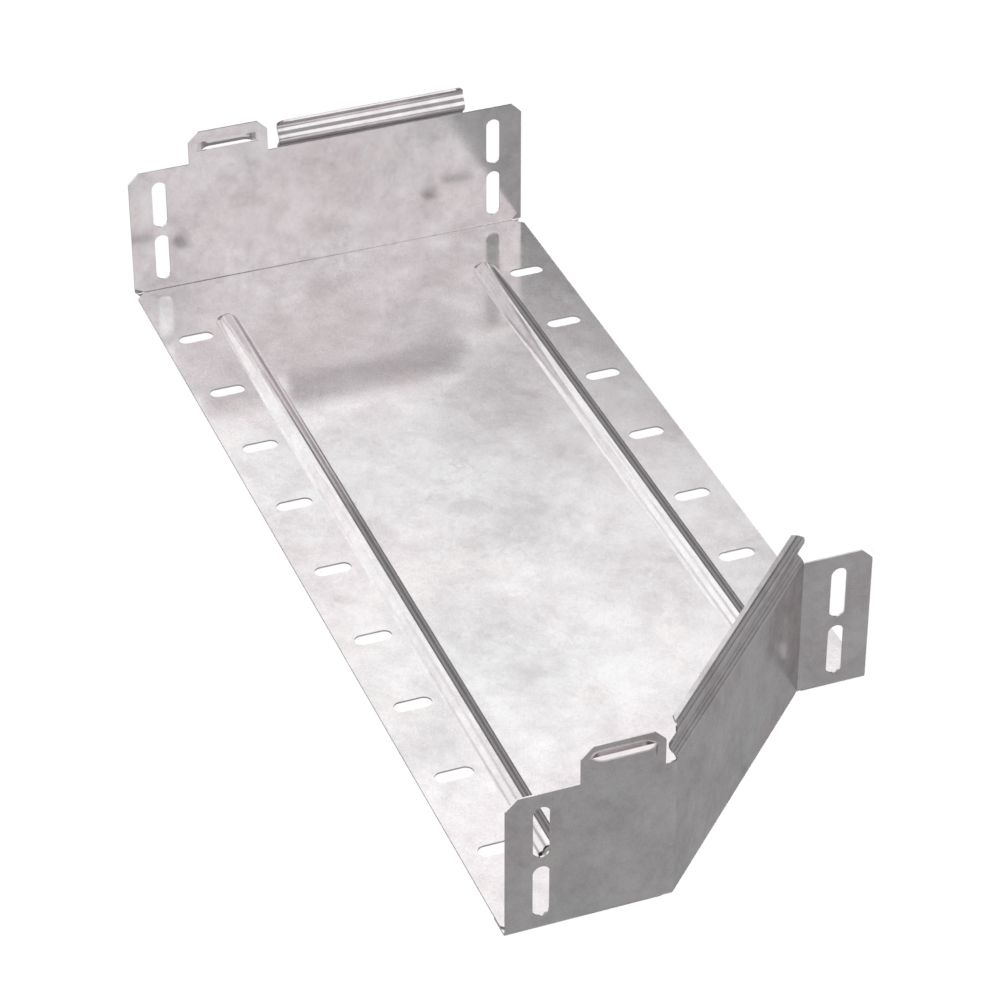 Аксессуары изготовленные из стали с защитным покрытием по методу Сендзимира – это изделия, на которых защитное цинковое покрытие было нанесено на листовую сталь перед изготовлением. Толщина защитного покрытия варьируется от 10 до 22мкм. Климатическое исполнение изделий УХЛ2, что предусматривают эксплуатацию в помещении и под навесом, при температуре эксплуатации от -80 до +150°С. Переходник предназначен для перехода с одной ширины лотка на другую, при неизменной высоте лотка. Крышка в комплект не входит.
