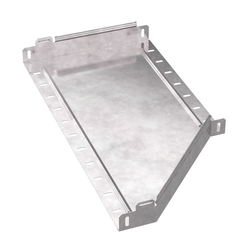 Аксессуары изготовленные из стали с защитным покрытием по методу Сендзимира – это изделия, на которых защитное цинковое покрытие было нанесено на листовую сталь перед изготовлением. Толщина защитного покрытия варьируется от 10 до 22мкм. Климатическое исполнение изделий УХЛ2, что предусматривают эксплуатацию в помещении и под навесом, при температуре эксплуатации от -80 до +150°С. Переходник предназначен для перехода с одной ширины лотка на другую, при неизменной высоте лотка. Крышка в комплект не входит.
