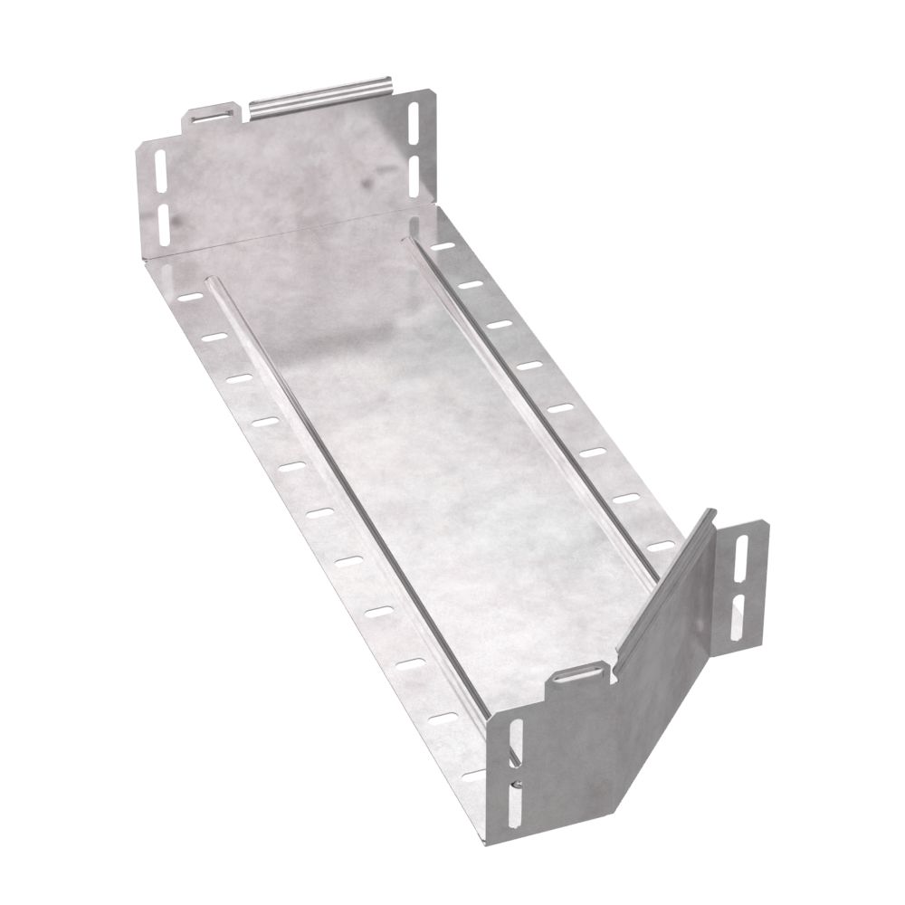 Аксессуары изготовленные из стали с защитным покрытием по методу Сендзимира – это изделия, на которых защитное цинковое покрытие было нанесено на листовую сталь перед изготовлением. Толщина защитного покрытия варьируется от 10 до 22мкм. Климатическое исполнение изделий УХЛ2, что предусматривают эксплуатацию в помещении и под навесом, при температуре эксплуатации от -80 до +150°С. Переходник предназначен для перехода с одной ширины лотка на другую, при неизменной высоте лотка. Крышка в комплект не входит.