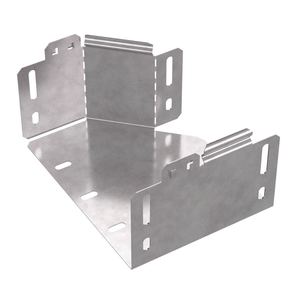 Аксессуары изготовленные из стали с защитным покрытием по методу Сендзимира – это изделия, на которых защитное цинковое покрытие было нанесено на листовую сталь перед изготовлением. Толщина защитного покрытия варьируется от 10 до 22мкм. Климатическое исполнение изделий УХЛ2, что предусматривают эксплуатацию в помещении и под навесом, при температуре эксплуатации от -80 до +150°С. Переходник правый предназначен для перехода с одной ширины лотка на другую, при неизменной высоте лотка. Крышка в комплект не входит.