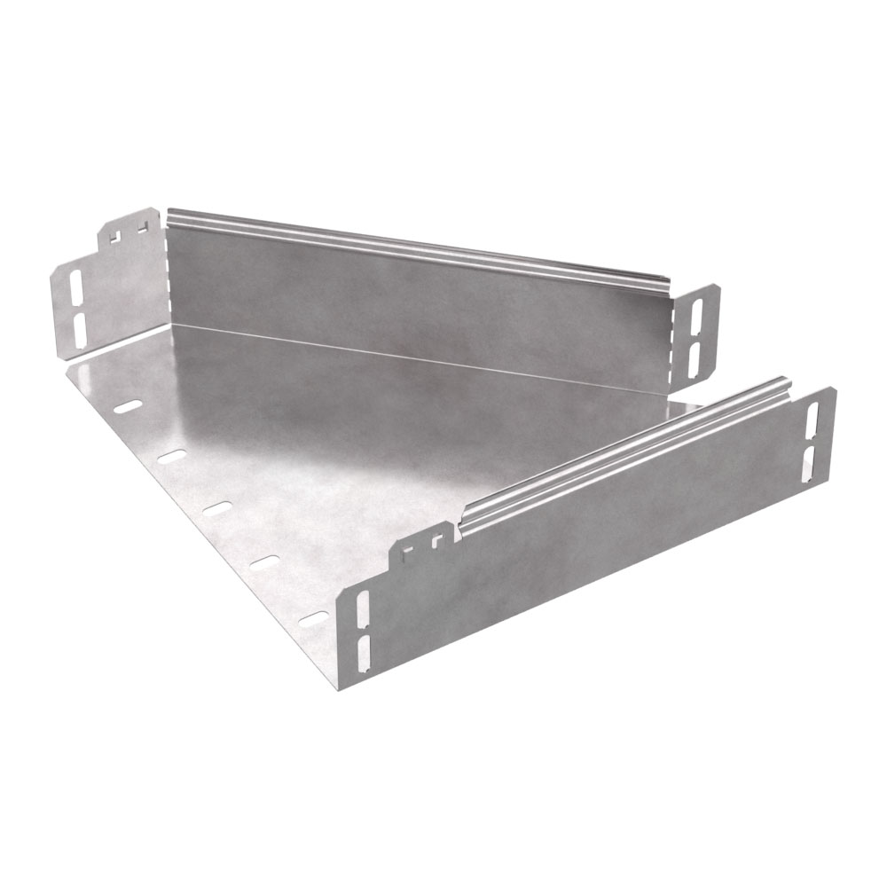 Аксессуары изготовленные из стали с защитным покрытием по методу Сендзимира – это изделия, на которых защитное цинковое покрытие было нанесено на листовую сталь перед изготовлением. Толщина защитного покрытия варьируется от 10 до 22мкм. Климатическое исполнение изделий УХЛ2, что предусматривают эксплуатацию в помещении и под навесом, при температуре эксплуатации от -80 до +150°С. Переходник правый предназначен для перехода с одной ширины лотка на другую, при неизменной высоте лотка. Крышка в комплект не входит.