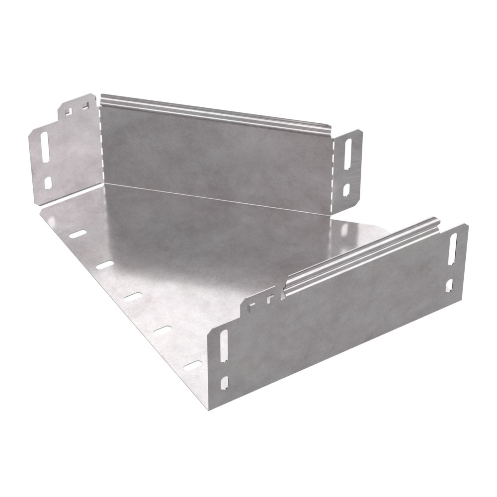 Аксессуары изготовленные из стали с защитным покрытием по методу Сендзимира – это изделия, на которых защитное цинковое покрытие было нанесено на листовую сталь перед изготовлением. Толщина защитного покрытия варьируется от 10 до 22мкм. Климатическое исполнение изделий УХЛ2, что предусматривают эксплуатацию в помещении и под навесом, при температуре эксплуатации от -80 до +150°С. Переходник правый предназначен для перехода с одной ширины лотка на другую, при неизменной высоте лотка. Крышка в комплект не входит.