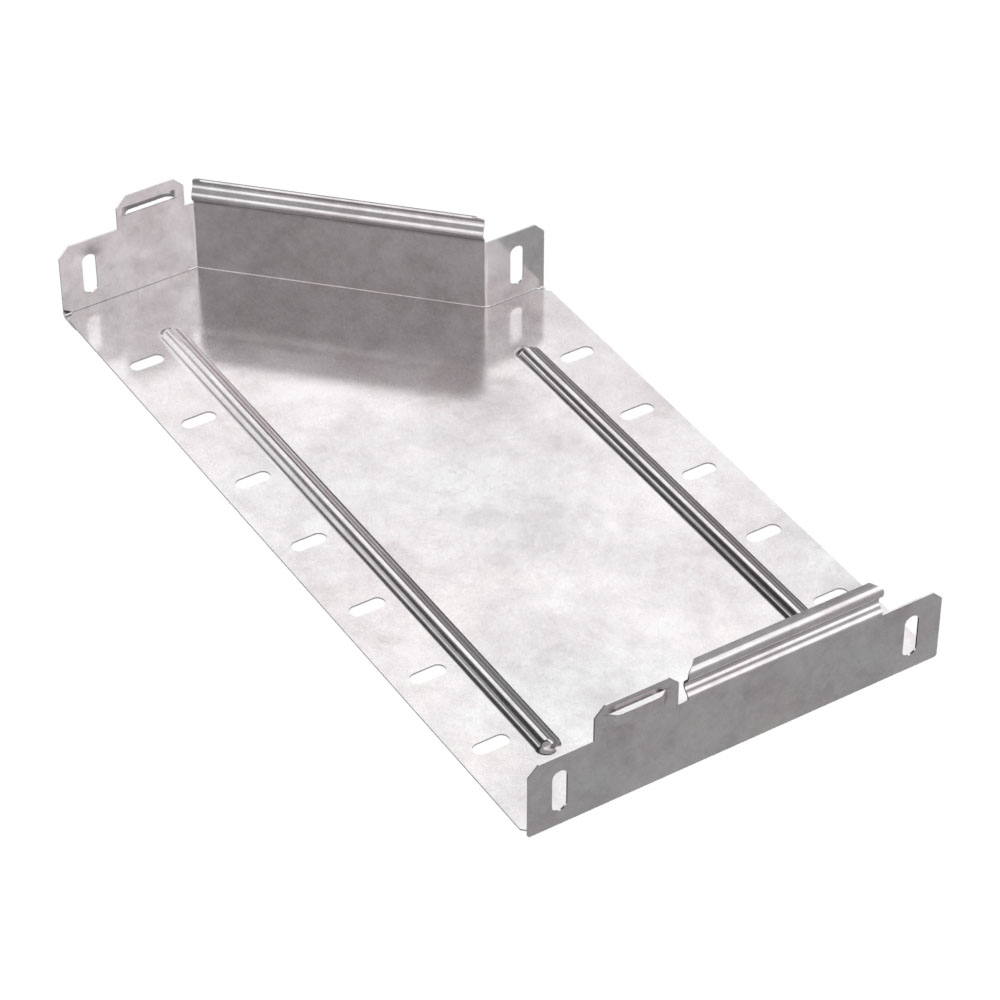 Аксессуары изготовленные из стали с защитным покрытием по методу Сендзимира – это изделия, на которых защитное цинковое покрытие было нанесено на листовую сталь перед изготовлением. Толщина защитного покрытия варьируется от 10 до 22мкм. Климатическое исполнение изделий УХЛ2, что предусматривают эксплуатацию в помещении и под навесом, при температуре эксплуатации от -80 до +150°С. Переходник правый предназначен для перехода с одной ширины лотка на другую, при неизменной высоте лотка. Крышка в комплект не входит.