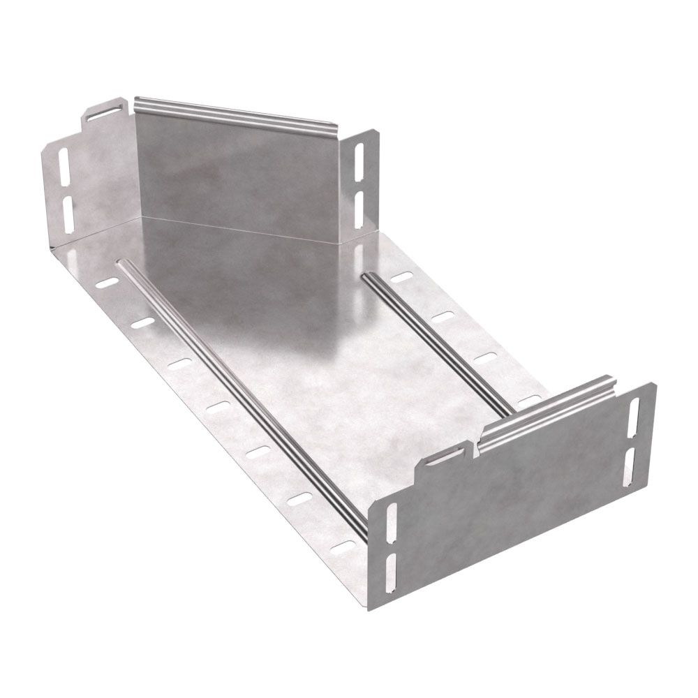Аксессуары изготовленные из стали с защитным покрытием по методу Сендзимира – это изделия, на которых защитное цинковое покрытие было нанесено на листовую сталь перед изготовлением. Толщина защитного покрытия варьируется от 10 до 22мкм. Климатическое исполнение изделий УХЛ2, что предусматривают эксплуатацию в помещении и под навесом, при температуре эксплуатации от -80 до +150°С. Переходник правый предназначен для перехода с одной ширины лотка на другую, при неизменной высоте лотка. Крышка в комплект не входит.