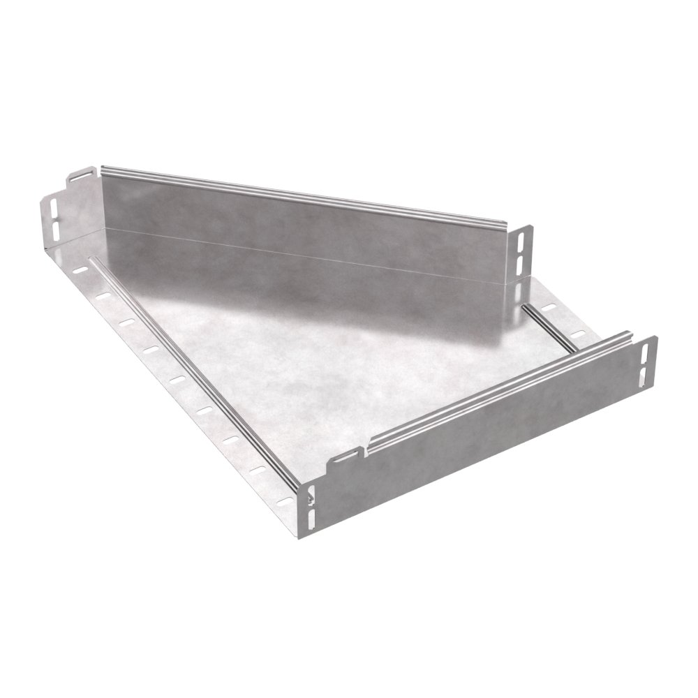 Аксессуары изготовленные из стали с защитным покрытием по методу Сендзимира – это изделия, на которых защитное цинковое покрытие было нанесено на листовую сталь перед изготовлением. Толщина защитного покрытия варьируется от 10 до 22мкм. Климатическое исполнение изделий УХЛ2, что предусматривают эксплуатацию в помещении и под навесом, при температуре эксплуатации от -80 до +150°С. Переходник правый предназначен для перехода с одной ширины лотка на другую, при неизменной высоте лотка. Крышка в комплект не входит.