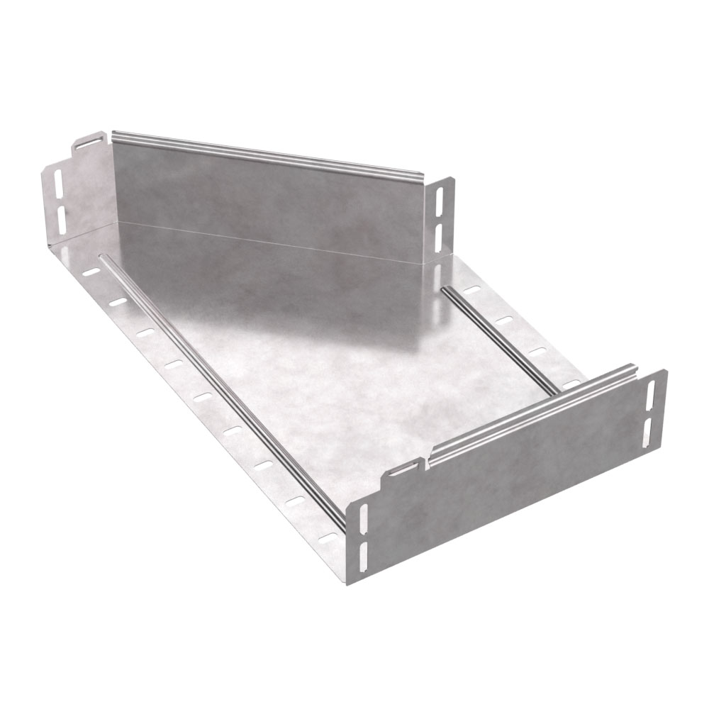 Аксессуары изготовленные из стали с защитным покрытием по методу Сендзимира – это изделия, на которых защитное цинковое покрытие было нанесено на листовую сталь перед изготовлением. Толщина защитного покрытия варьируется от 10 до 22мкм. Климатическое исполнение изделий УХЛ2, что предусматривают эксплуатацию в помещении и под навесом, при температуре эксплуатации от -80 до +150°С. Переходник правый предназначен для перехода с одной ширины лотка на другую, при неизменной высоте лотка. Крышка в комплект не входит.