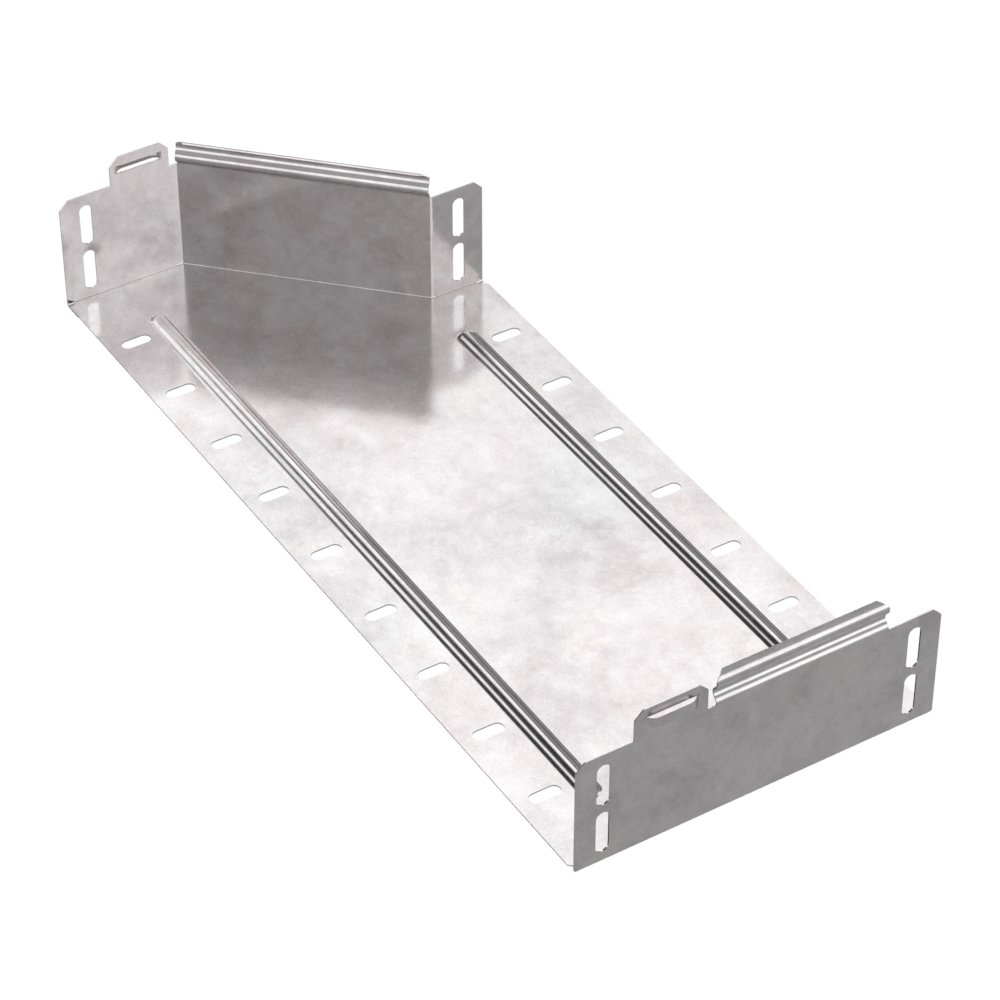 Аксессуары изготовленные из стали с защитным покрытием по методу Сендзимира – это изделия, на которых защитное цинковое покрытие было нанесено на листовую сталь перед изготовлением. Толщина защитного покрытия варьируется от 10 до 22мкм. Климатическое исполнение изделий УХЛ2, что предусматривают эксплуатацию в помещении и под навесом, при температуре эксплуатации от -80 до +150°С. Переходник правый предназначен для перехода с одной ширины лотка на другую, при неизменной высоте лотка. Крышка в комплект не входит.
