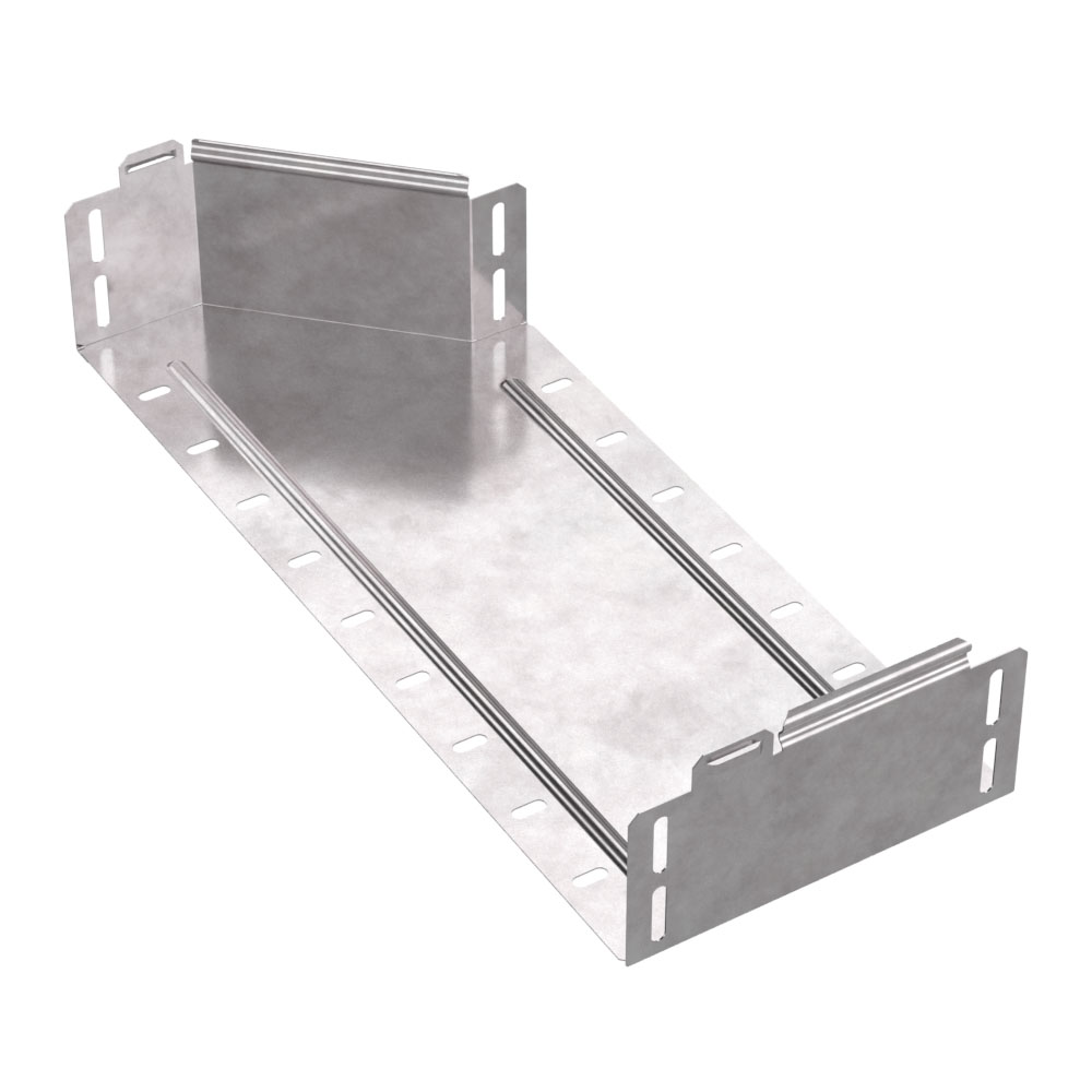 Аксессуары изготовленные из стали с защитным покрытием по методу Сендзимира – это изделия, на которых защитное цинковое покрытие было нанесено на листовую сталь перед изготовлением. Толщина защитного покрытия варьируется от 10 до 22мкм. Климатическое исполнение изделий УХЛ2, что предусматривают эксплуатацию в помещении и под навесом, при температуре эксплуатации от -80 до +150°С. Переходник правый предназначен для перехода с одной ширины лотка на другую, при неизменной высоте лотка. Крышка в комплект не входит.