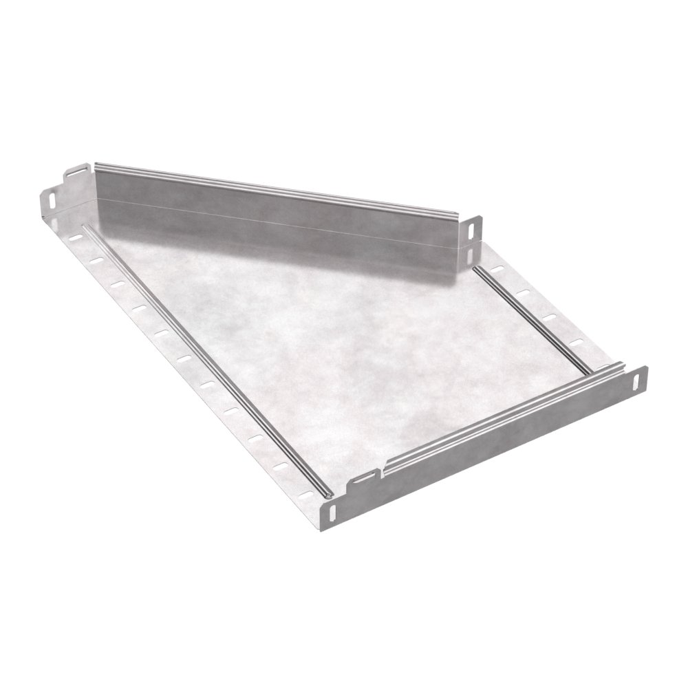 Аксессуары изготовленные из стали с защитным покрытием по методу Сендзимира – это изделия, на которых защитное цинковое покрытие было нанесено на листовую сталь перед изготовлением. Толщина защитного покрытия варьируется от 10 до 22мкм. Климатическое исполнение изделий УХЛ2, что предусматривают эксплуатацию в помещении и под навесом, при температуре эксплуатации от -80 до +150°С. Переходник правый предназначен для перехода с одной ширины лотка на другую, при неизменной высоте лотка. Крышка в комплект не входит.