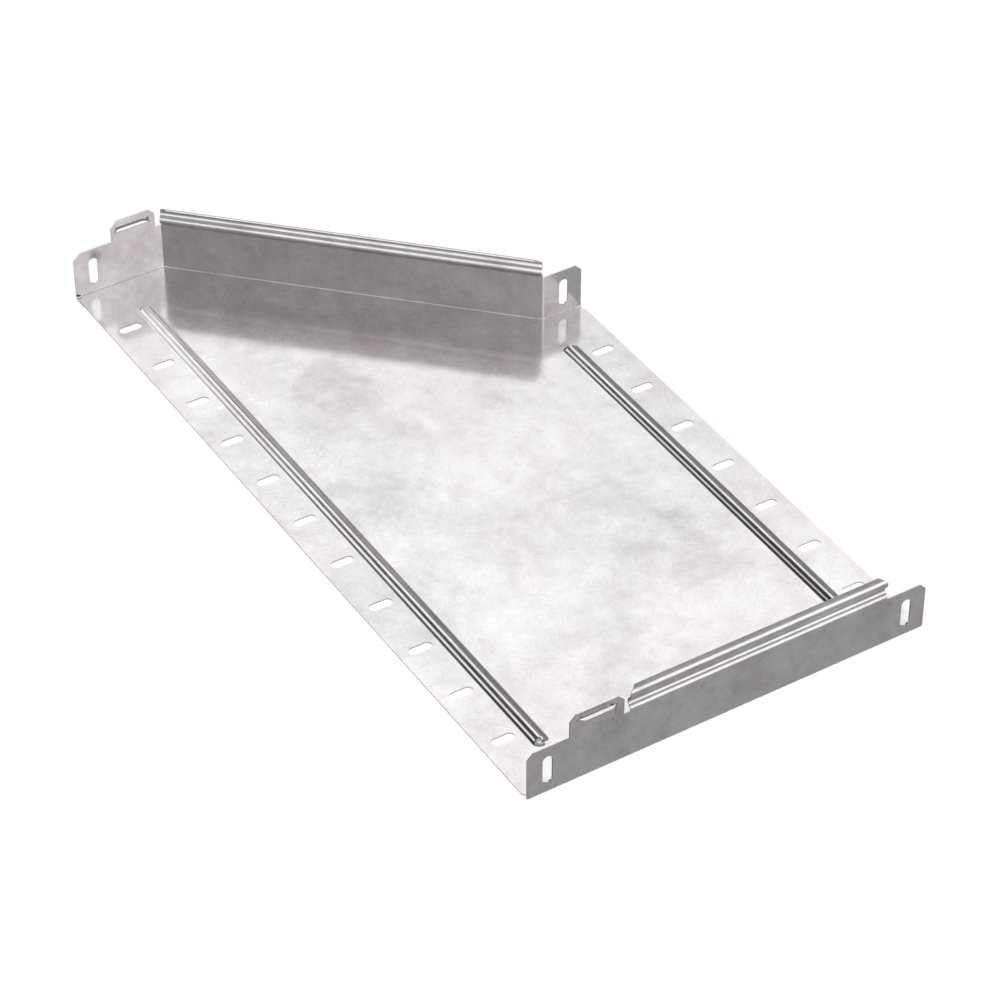 Аксессуары изготовленные из стали с защитным покрытием по методу Сендзимира – это изделия, на которых защитное цинковое покрытие было нанесено на листовую сталь перед изготовлением. Толщина защитного покрытия варьируется от 10 до 22мкм. Климатическое исполнение изделий УХЛ2, что предусматривают эксплуатацию в помещении и под навесом, при температуре эксплуатации от -80 до +150°С. Переходник правый предназначен для перехода с одной ширины лотка на другую, при неизменной высоте лотка. Крышка в комплект не входит.
