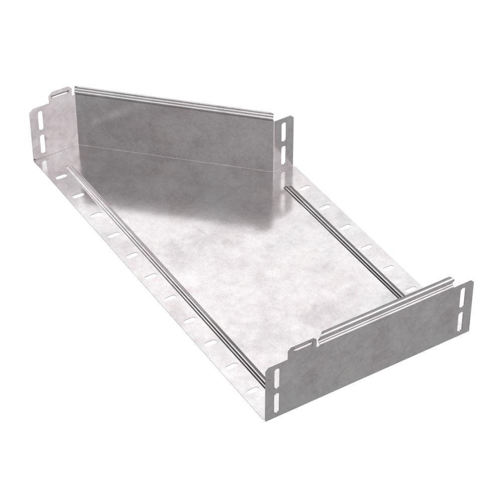 Аксессуары изготовленные из стали с защитным покрытием по методу Сендзимира – это изделия, на которых защитное цинковое покрытие было нанесено на листовую сталь перед изготовлением. Толщина защитного покрытия варьируется от 10 до 22мкм. Климатическое исполнение изделий УХЛ2, что предусматривают эксплуатацию в помещении и под навесом, при температуре эксплуатации от -80 до +150°С. Переходник правый предназначен для перехода с одной ширины лотка на другую, при неизменной высоте лотка. Крышка в комплект не входит.