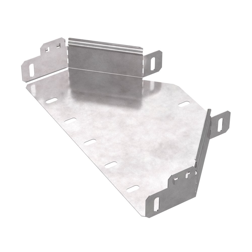 Аксессуары изготовленные из стали с защитным покрытием по методу Сендзимира – это изделия, на которых защитное цинковое покрытие было нанесено на листовую сталь перед изготовлением. Толщина защитного покрытия варьируется от 10 до 22мкм. Климатическое исполнение изделий УХЛ2, что предусматривают эксплуатацию в помещении и под навесом, при температуре эксплуатации от -80 до +150°С. Переходник симметричный предназначен для перехода с одной ширины лотка на другую, при неизменной высоте лотка. Крышка в комплект не входит.