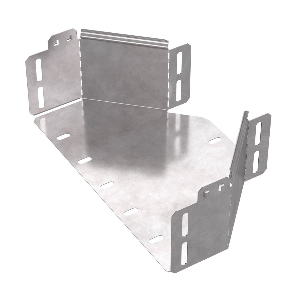 Аксессуары изготовленные из стали с защитным покрытием по методу Сендзимира – это изделия, на которых защитное цинковое покрытие было нанесено на листовую сталь перед изготовлением. Толщина защитного покрытия варьируется от 10 до 22мкм. Климатическое исполнение изделий УХЛ2, что предусматривают эксплуатацию в помещении и под навесом, при температуре эксплуатации от -80 до +150°С. Переходник симметричный предназначен для перехода с одной ширины лотка на другую, при неизменной высоте лотка. Крышка в комплект не входит.