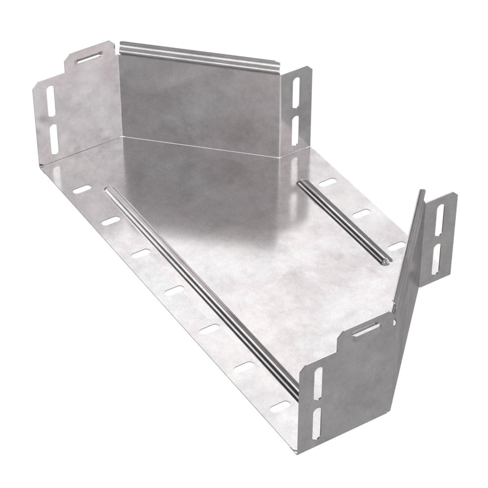 Аксессуары изготовленные из стали с защитным покрытием по методу Сендзимира – это изделия, на которых защитное цинковое покрытие было нанесено на листовую сталь перед изготовлением. Толщина защитного покрытия варьируется от 10 до 22мкм. Климатическое исполнение изделий УХЛ2, что предусматривают эксплуатацию в помещении и под навесом, при температуре эксплуатации от -80 до +150°С. Переходник симметричный предназначен для перехода с одной ширины лотка на другую, при неизменной высоте лотка. Крышка в комплект не входит.