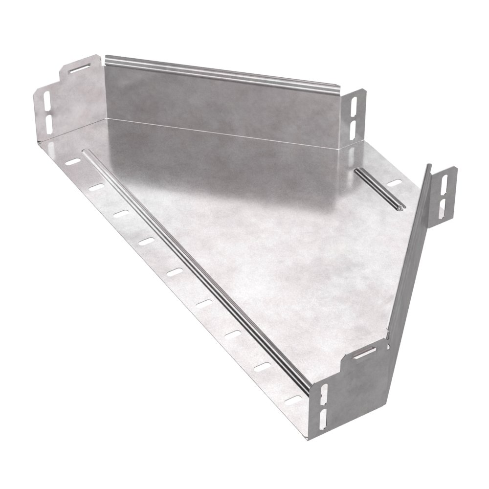 Аксессуары изготовленные из стали с защитным покрытием по методу Сендзимира – это изделия, на которых защитное цинковое покрытие было нанесено на листовую сталь перед изготовлением. Толщина защитного покрытия варьируется от 10 до 22мкм. Климатическое исполнение изделий УХЛ2, что предусматривают эксплуатацию в помещении и под навесом, при температуре эксплуатации от -80 до +150°С. Переходник симметричный предназначен для перехода с одной ширины лотка на другую, при неизменной высоте лотка. Крышка в комплект не входит.