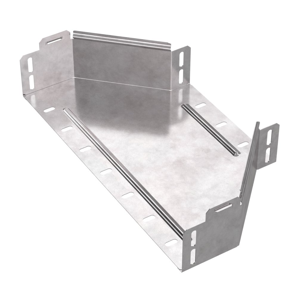 Аксессуары изготовленные из стали с защитным покрытием по методу Сендзимира – это изделия, на которых защитное цинковое покрытие было нанесено на листовую сталь перед изготовлением. Толщина защитного покрытия варьируется от 10 до 22мкм. Климатическое исполнение изделий УХЛ2, что предусматривают эксплуатацию в помещении и под навесом, при температуре эксплуатации от -80 до +150°С. Переходник симметричный предназначен для перехода с одной ширины лотка на другую, при неизменной высоте лотка. Крышка в комплект не входит.