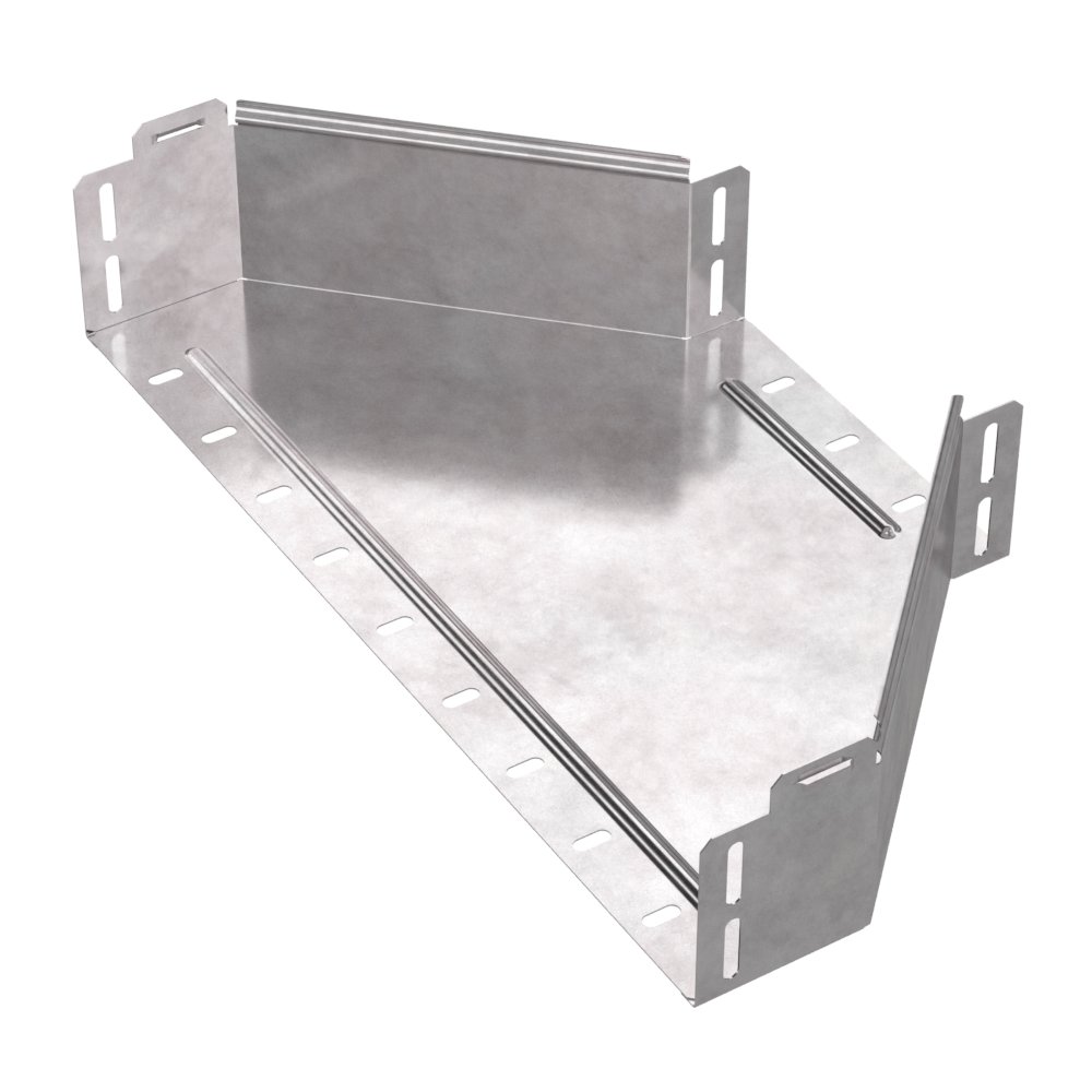 Аксессуары изготовленные из стали с защитным покрытием по методу Сендзимира – это изделия, на которых защитное цинковое покрытие было нанесено на листовую сталь перед изготовлением. Толщина защитного покрытия варьируется от 10 до 22мкм. Климатическое исполнение изделий УХЛ2, что предусматривают эксплуатацию в помещении и под навесом, при температуре эксплуатации от -80 до +150°С. Переходник симметричный предназначен для перехода с одной ширины лотка на другую, при неизменной высоте лотка. Крышка в комплект не входит.