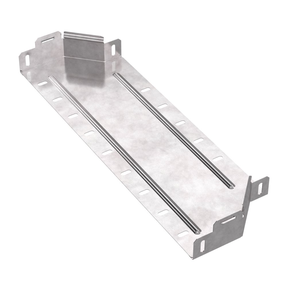 Аксессуары изготовленные из стали с защитным покрытием по методу Сендзимира – это изделия, на которых защитное цинковое покрытие было нанесено на листовую сталь перед изготовлением. Толщина защитного покрытия варьируется от 10 до 22мкм. Климатическое исполнение изделий УХЛ2, что предусматривают эксплуатацию в помещении и под навесом, при температуре эксплуатации от -80 до +150°С. Переходник симметричный предназначен для перехода с одной ширины лотка на другую, при неизменной высоте лотка. Крышка в комплект не входит.