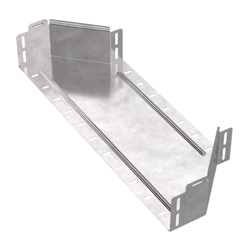 Аксессуары изготовленные из стали с защитным покрытием по методу Сендзимира – это изделия, на которых защитное цинковое покрытие было нанесено на листовую сталь перед изготовлением. Толщина защитного покрытия варьируется от 10 до 22мкм. Климатическое исполнение изделий УХЛ2, что предусматривают эксплуатацию в помещении и под навесом, при температуре эксплуатации от -80 до +150°С. Переходник симметричный предназначен для перехода с одной ширины лотка на другую, при неизменной высоте лотка. Крышка в комплект не входит.