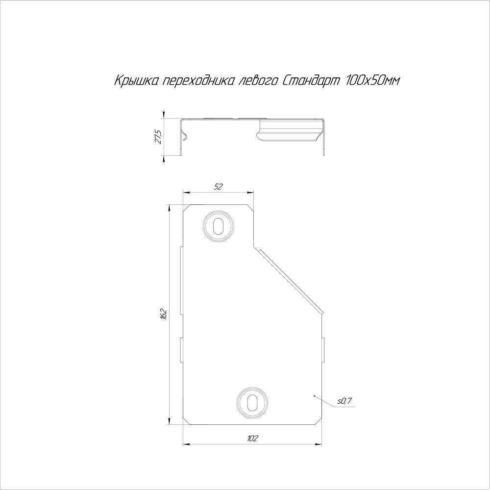 PR16.5641 Крышка переходника левого Стандарт INOX (AISI 409) 100х50 Промрукав; нерж.сталь; -150..+600°C; RAL 7046; толщина 0,7 мм; 0,0918 кг.