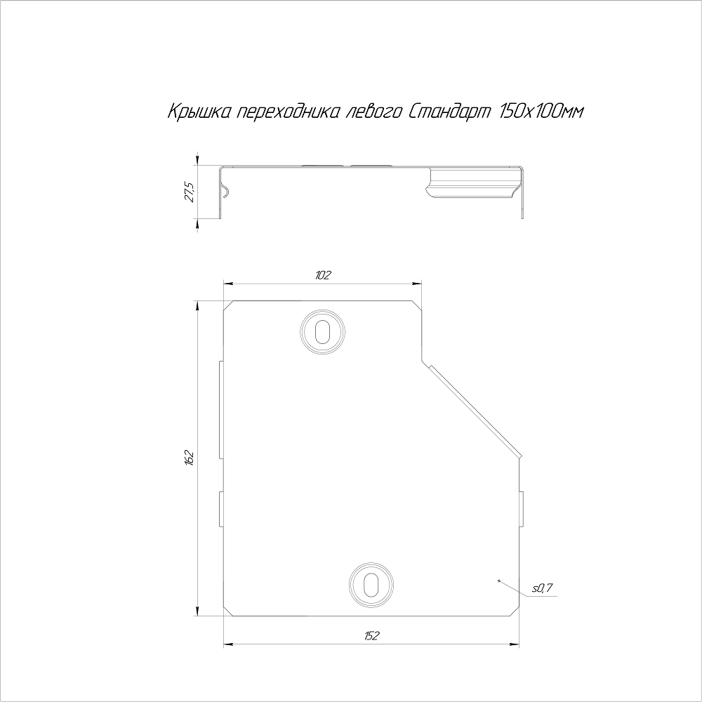 PR16.5642 Крышка переходника левого Стандарт INOX (AISI 409) 150х100 Промрукав; нерж.сталь; -150..+600°C; RAL 7046; толщина 0,7 мм; 0,1358 кг.