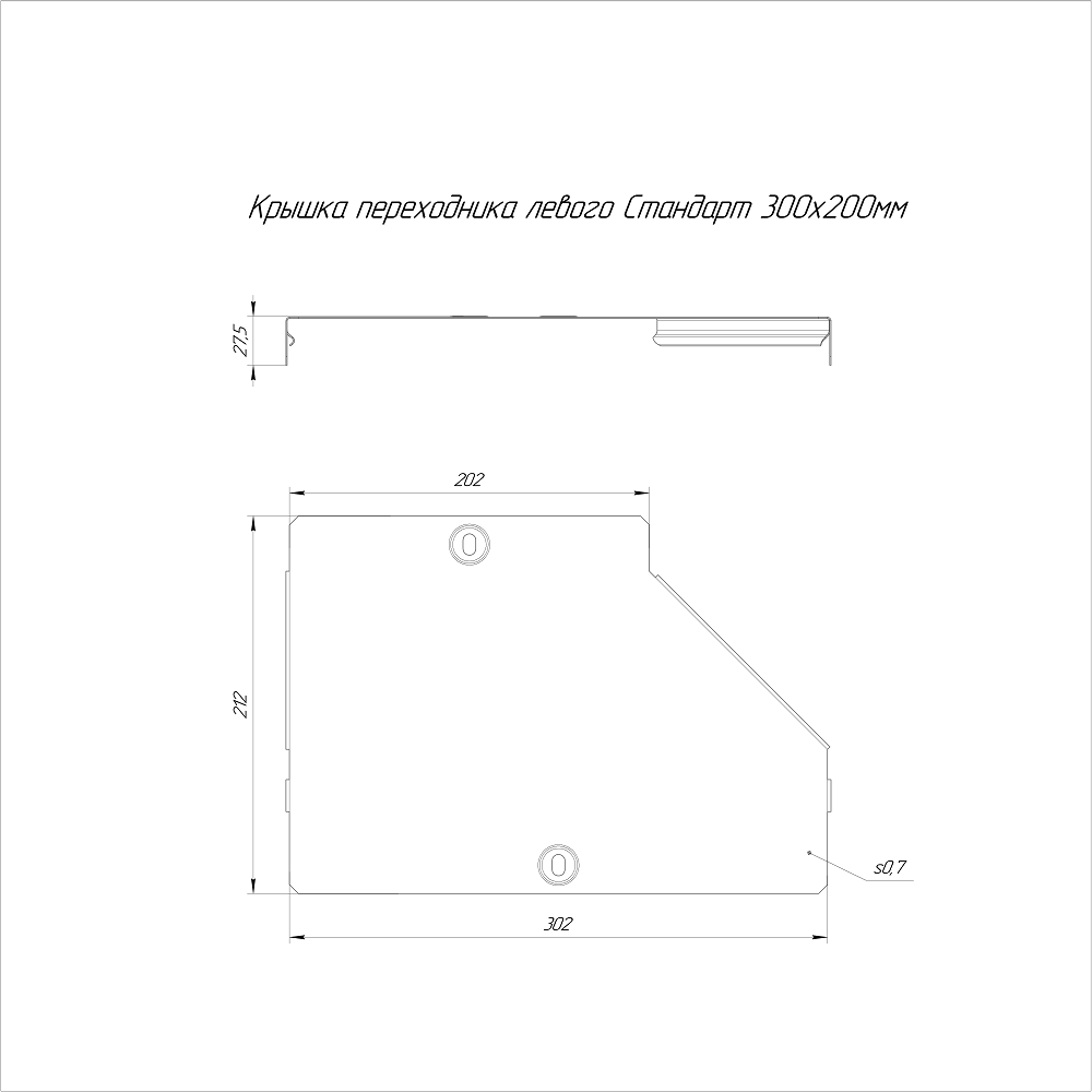 PR16.5647 Крышка переходника левого Стандарт INOX (AISI 409) 300х200 Промрукав; нерж.сталь; -150..+600°C; RAL 7046; толщина 0,7 мм; 0,3334 кг.
