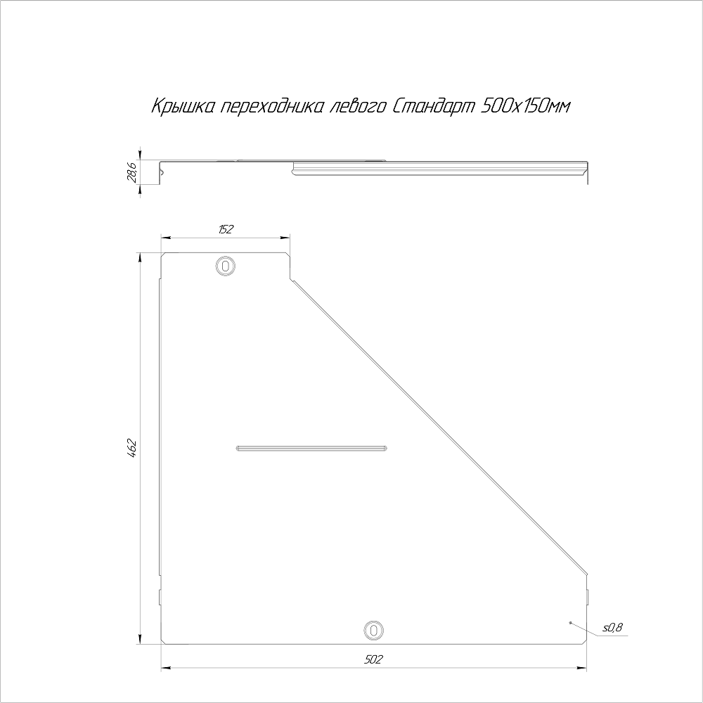 PR16.5651 Крышка переходника левого Стандарт INOX (AISI 409) 500х150 Промрукав; нерж.сталь; -150..+600°C; RAL 7046; толщина 0,8 мм; 1,1003 кг.
