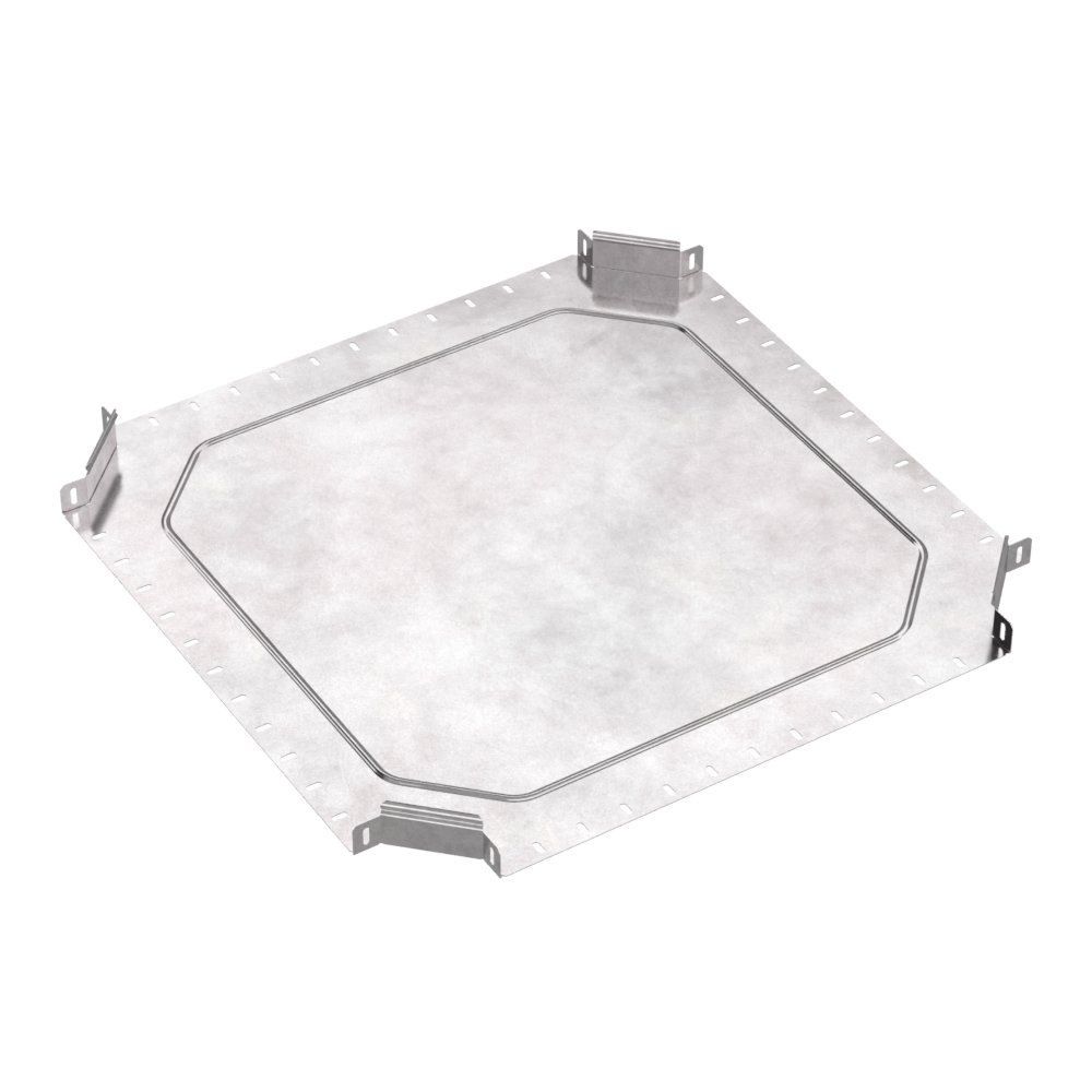 Аксессуары изготовленные из стали с защитным покрытием по методу Сендзимира – это изделия, на которых защитное цинковое покрытие было нанесено на листовую сталь перед изготовлением. Толщина защитного покрытия варьируется от 10 до 22мкм. Климатическое исполнение изделий УХЛ2, что предусматривают эксплуатацию в помещении и под навесом, при температуре эксплуатации от -80 до +150°С. Ответвитель X-образный предназначен для разветвления кабельных трасс в горизонтальном направлении, для перфорированных и глухих лотков. В комплект не входит крышка.