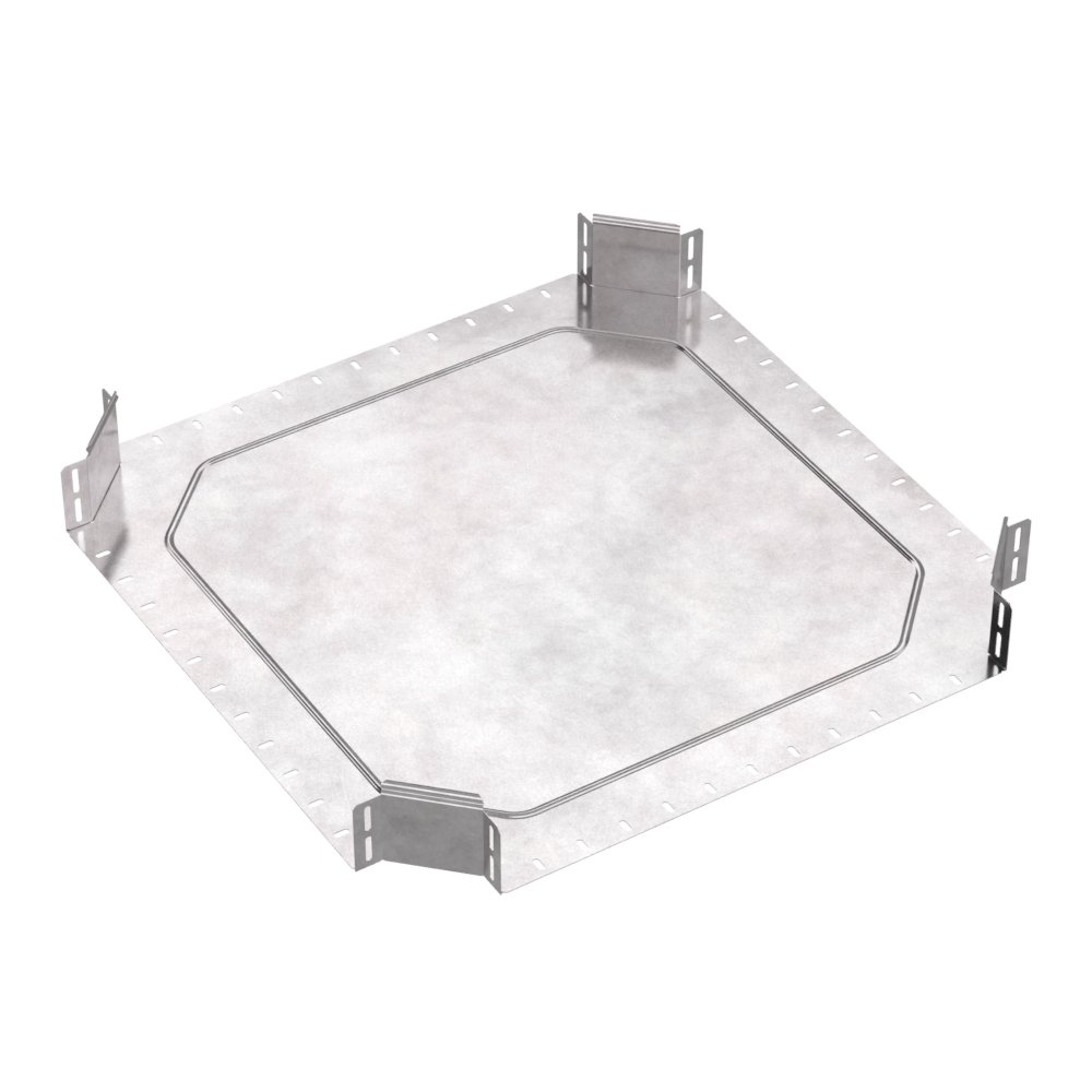 Аксессуары изготовленные из стали с защитным покрытием по методу Сендзимира – это изделия, на которых защитное цинковое покрытие было нанесено на листовую сталь перед изготовлением. Толщина защитного покрытия варьируется от 10 до 22мкм. Климатическое исполнение изделий УХЛ2, что предусматривают эксплуатацию в помещении и под навесом, при температуре эксплуатации от -80 до +150°С. Ответвитель X-образный предназначен для разветвления кабельных трасс в горизонтальном направлении, для перфорированных и глухих лотков. В комплект не входит крышка.