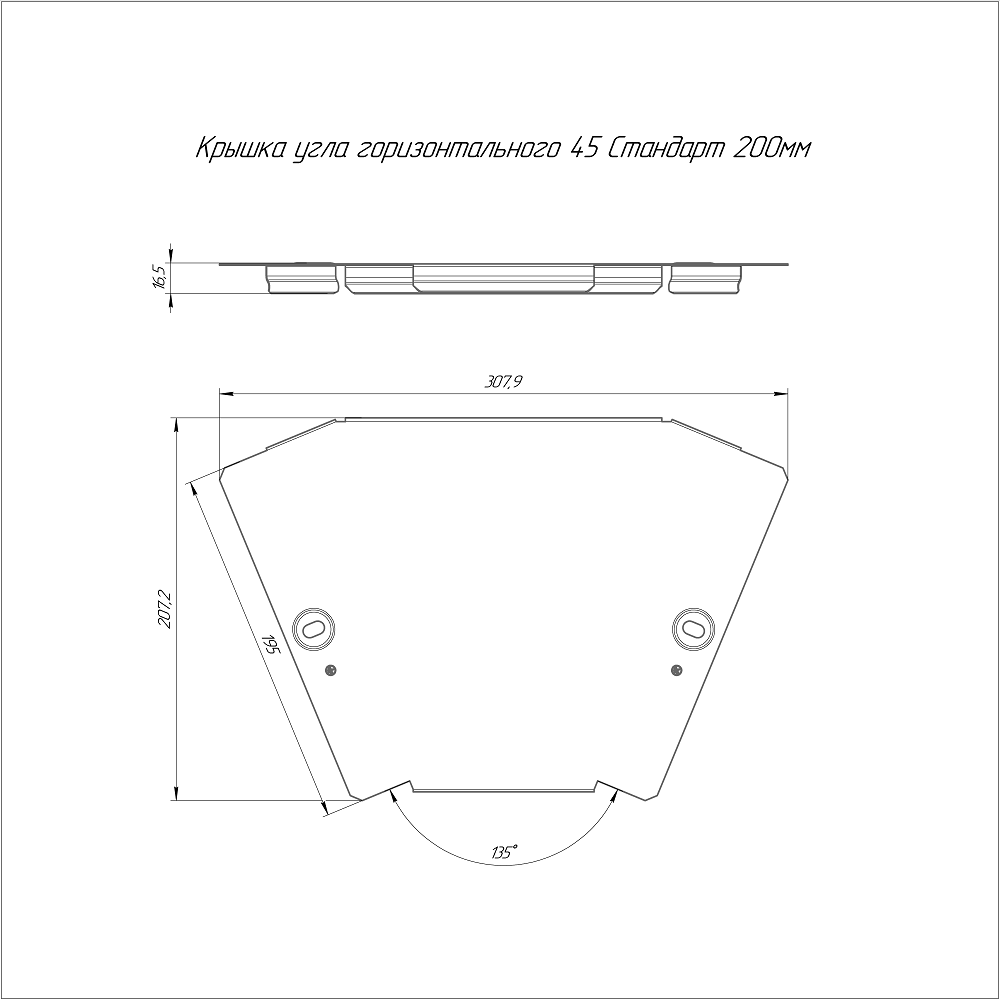 PR16.3488 крышка угла горизонтального 45 градусов Стандарт INOX (AISI 409) 200 Промрукав; нерж.сталь; -150..+600°C; RAL 7046; толщина 0,7 мм; 0,299 кг.