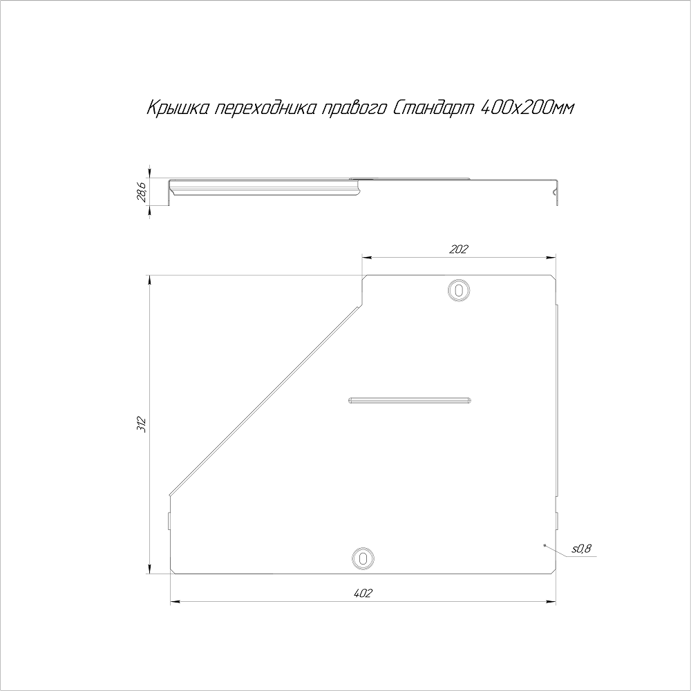 PR16.5910 крышка переходника правого Стандарт INOX (AISI 409) 400х200 Промрукав; нерж.сталь; -150..600°C; RAL 7046; толщина 0,8 мм; 0,6801 кг.