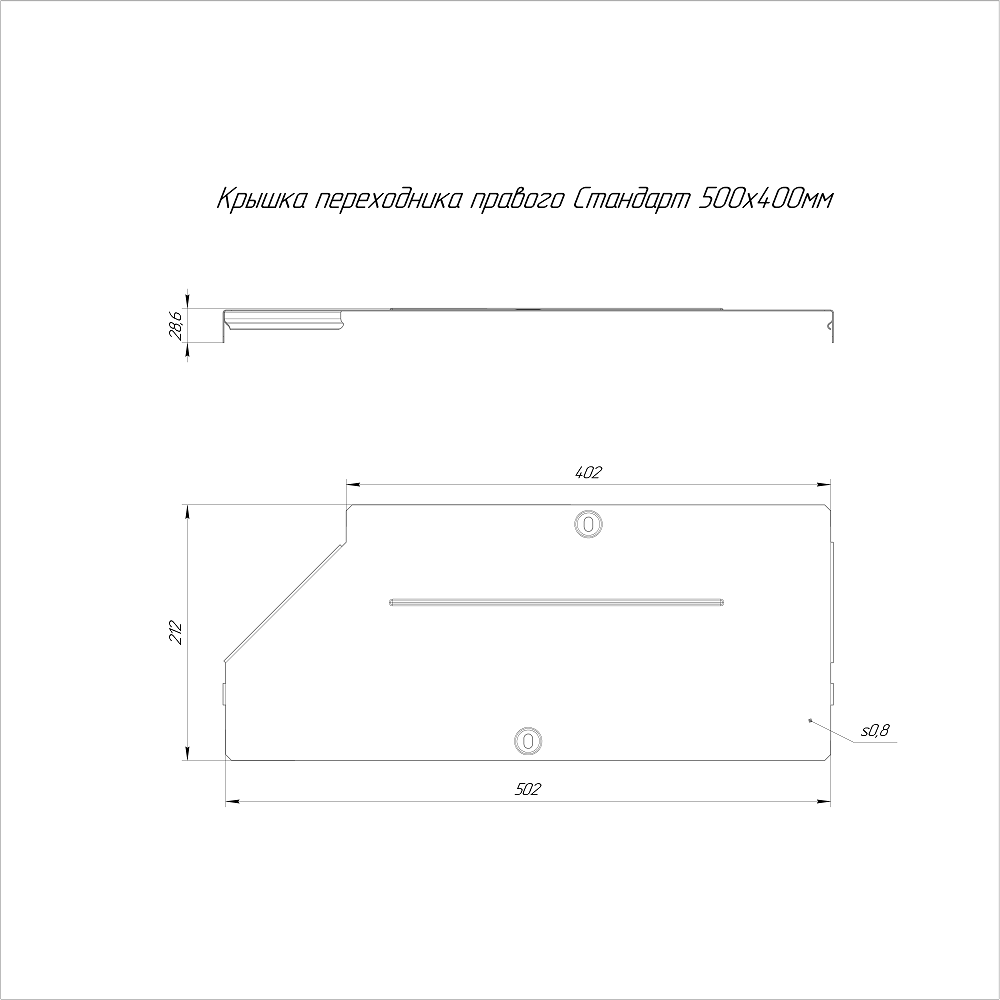 PR16.5915 крышка переходника правого Стандарт INOX (AISI 409) 500х400 Промрукав; нерж.сталь; -150..600°C; RAL 7046; толщина 0,8 мм; 0,6466 кг.