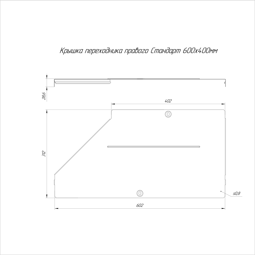 PR16.5917 крышка переходника правого Стандарт INOX (AISI 409) 600х400 Промрукав; нерж.сталь; -150..600°C; RAL 7046; толщина 0,8 мм; 1,0693 кг.