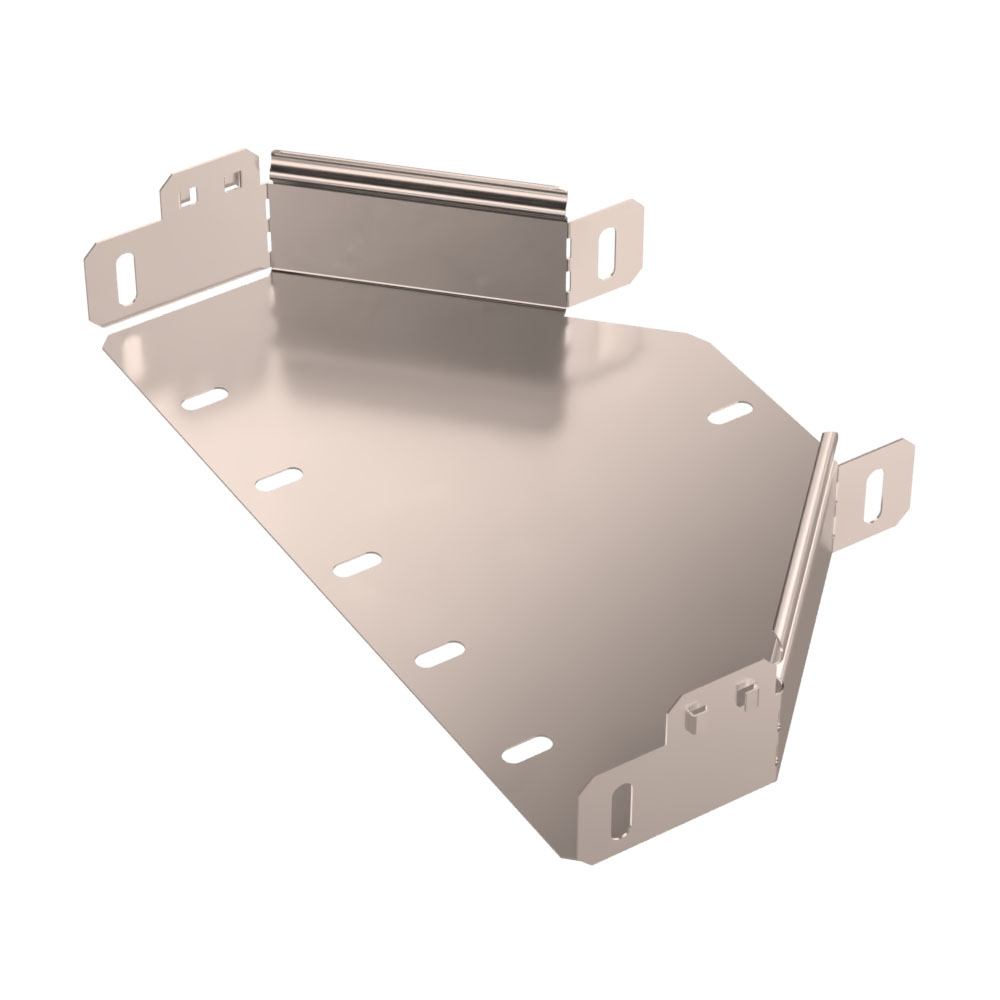 Аксессуары в исполнении AISI 409 – это изделия, изготовленные из ферритовой марки нержавеющей стали 08Х13, обладающих коррозионной стойкостью и высокими прочностями показателями, что позволяет применять изделия, в различных непищевых отраслях промышленности. Переходник симметричный предназначен для перехода с одной ширины лотка на другую.